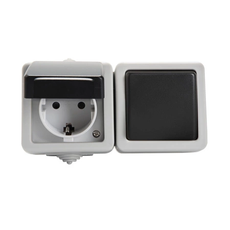 Jednopólová spínací zásuvka Ochrana 10A Uzemnění IP54 Obdélníková šedá TEKNO Kanlux