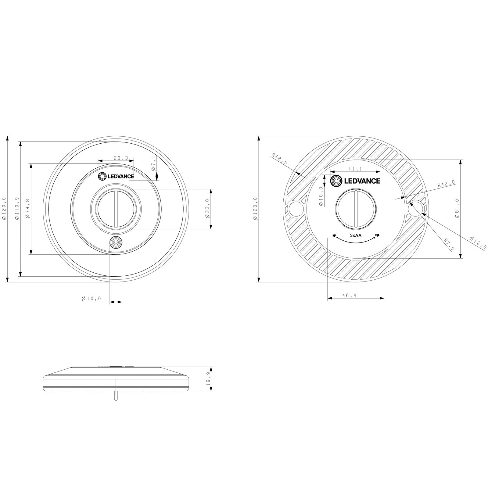 Je vyrobena z odolného polystyrenu (PS) v bílé barvě a s průměrem 12 cm, je odolná vůči nepříznivým povětrnostním podmínkám a má široký rozsah provozních teplot od -20 °C do +40 °C. Spolehlivost tohoto zařízení podtrhuje životnost 30000 hodin. Svítilna je nestmívatelná a její integrovaný LED zdroj snižuje potřebu výměny žárovek. Tento výrobek, který splňuje normy CE, má spotřebu energie 2 kWh.