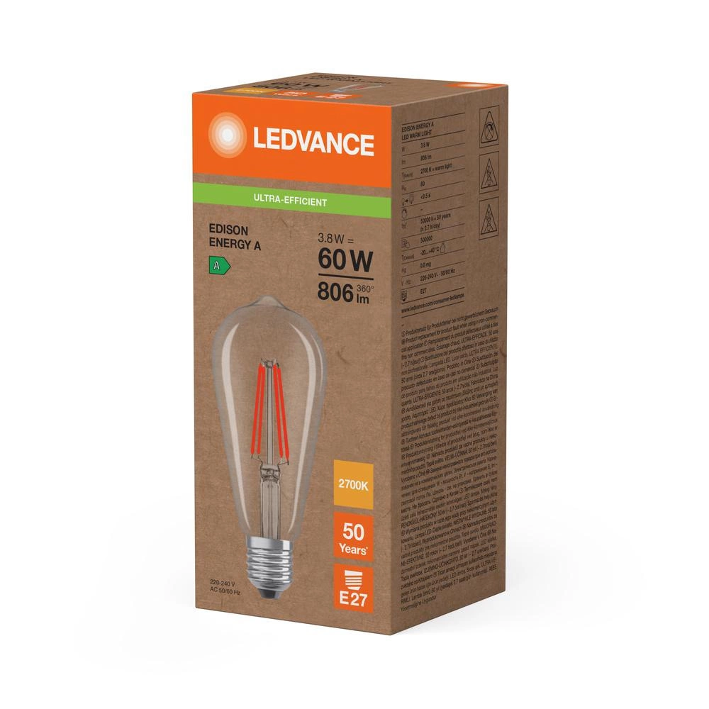 LED Edison E27 ST64 3,8W = 60W 806lm 2700K teplá bílá 300° žárovka Ledvance