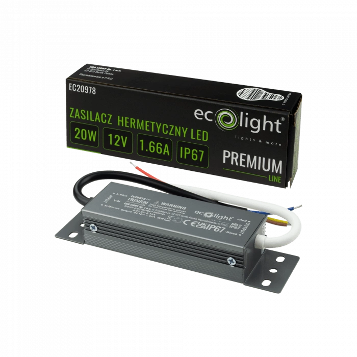 LED zdroj IP67 20W 12V Premium Ecolight