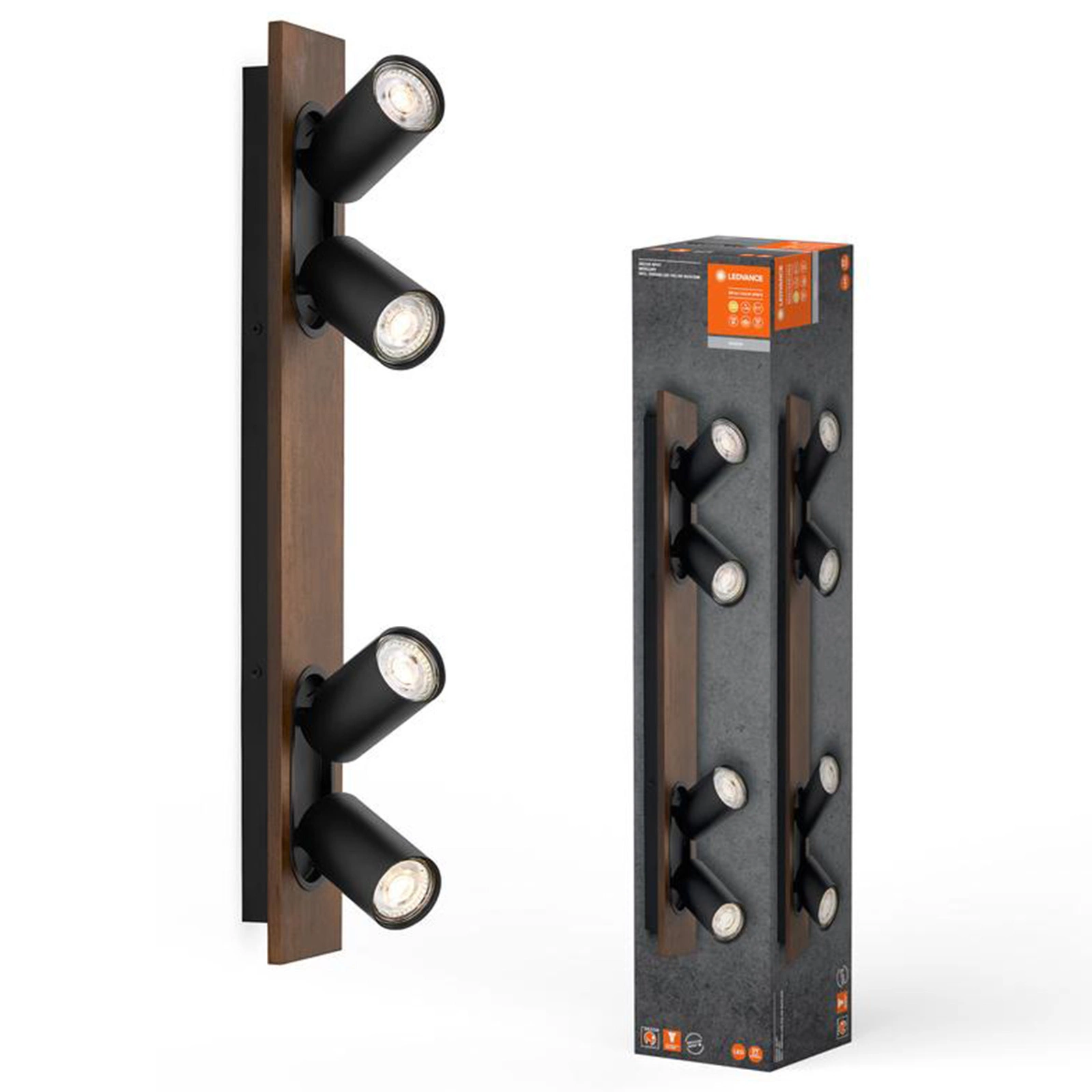 LED nástěnné stropní světlo LED reflektor 4-bodový dekorativní dřevo 13,6W GU10 černá LEDVANCE