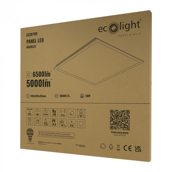 Panel vyniká vysokou energetickou účinností a životností - pracuje 20 000 hodin při účiníku 0,9, takže je šetrný k životnímu prostředí. Má stupeň odolnosti IP20, takže je ideální pro použití v interiéru. Díky standardnímu napájení ze sítě 220-240 V AC a kompaktnímu, estetickému designu s mléčně bílou clonou poskytuje panel vynikající kvalitu světla a může se stát stylovou součástí každého interiéru. Vyberte si kvalitu a spolehlivost s panelem ECO LIGHT!