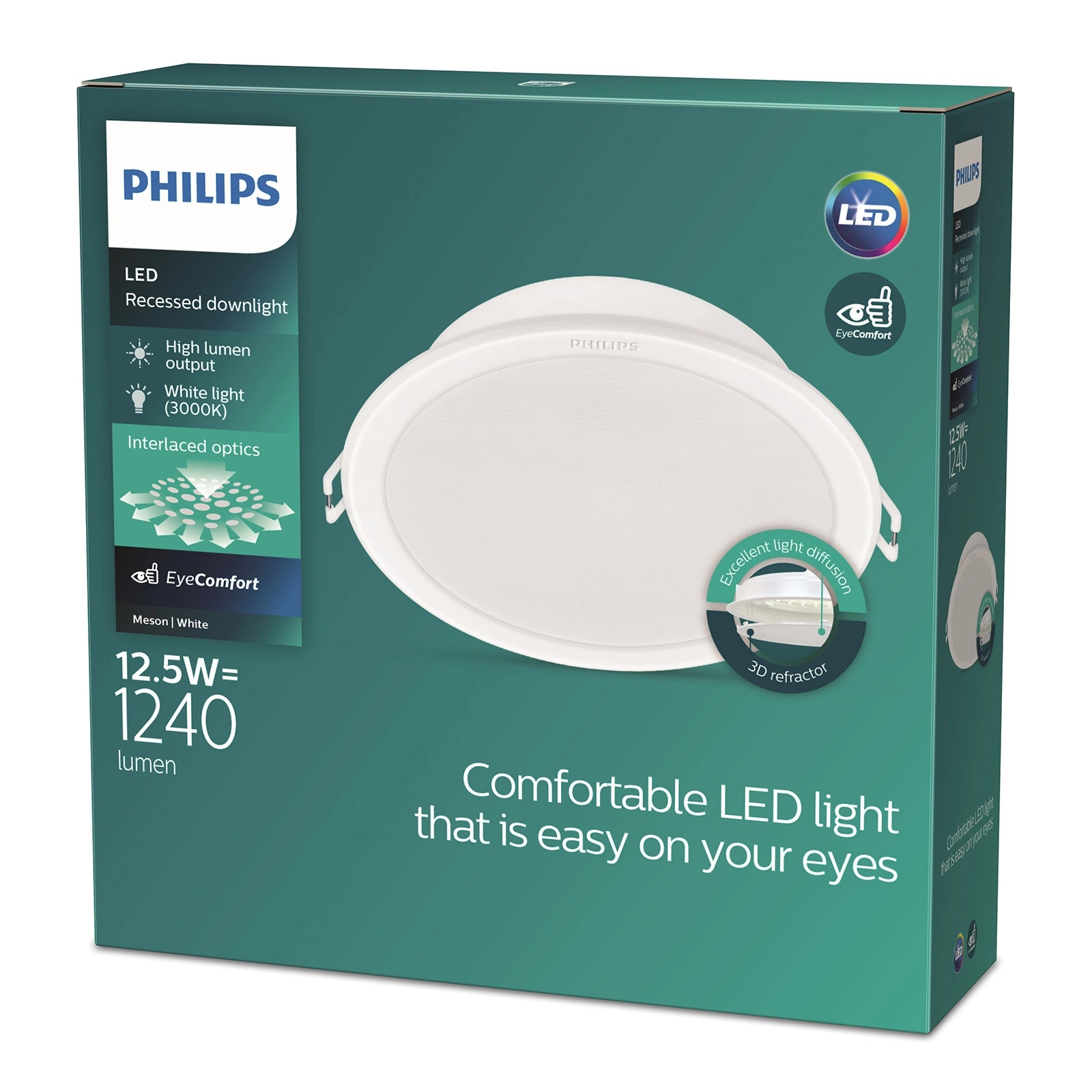 Philips Meson je elegantní vestavné LED svítidlo, které kombinuje moderní design s výjimečnou funkčností. S příkonem 12,5 W a průměrem 140 mm, toto kompaktní svítidlo je ideální pro různé prostory, od obývacího pokoje po kuchyň nebo chodbu. Díky neutrálnímu bílému provedení Meson harmonicky zapadá do stropu, aniž by dominoval designu interiéru.