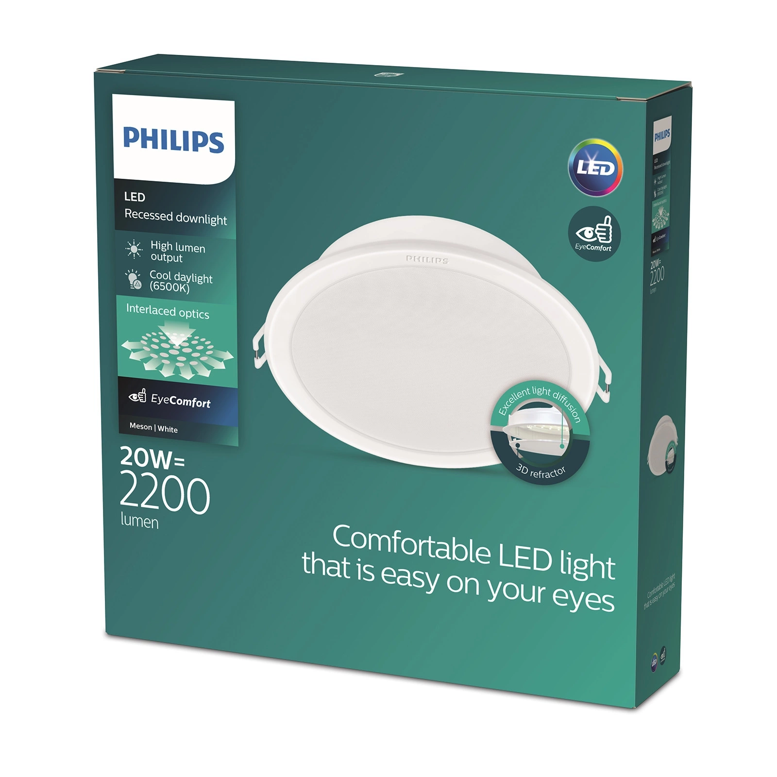 Philips Meson je elegantní vestavné LED svítidlo, které kombinuje moderní design s výjimečnou funkčností. S příkonem 20 W a průměrem 190 mm, toto kompaktní svítidlo je ideální pro různé prostory, od obývacího pokoje po kuchyň nebo chodbu. Díky neutrálnímu bílému provedení Meson harmonicky zapadá do stropu, aniž by dominoval designu interiéru.
