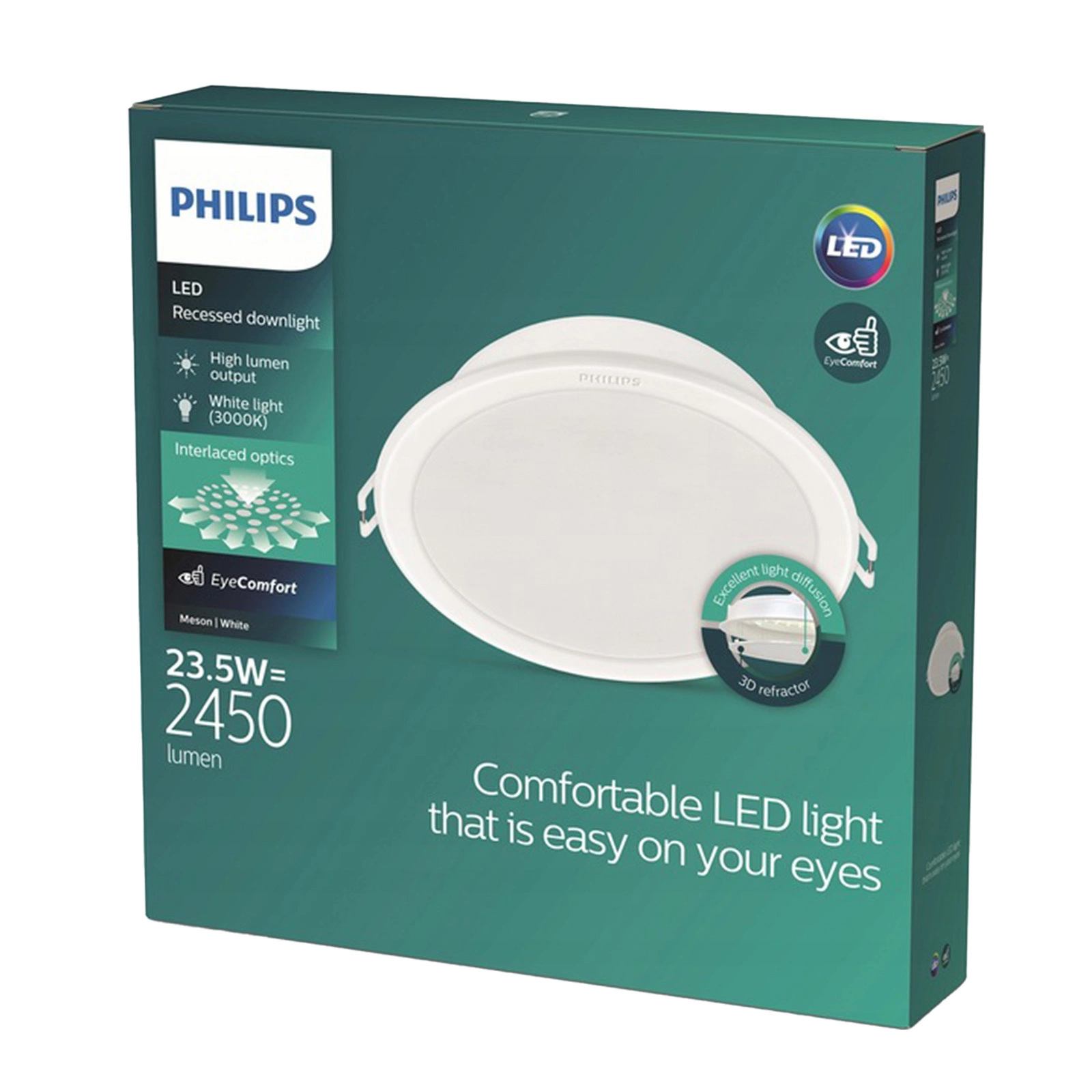 Philips Meson je elegantní vestavné LED svítidlo, které kombinuje moderní design s výjimečnou funkčností. S výkonem 23,5 W a průměrem 215 mm, toto kompaktní svítidlo je ideální pro různé prostory, od obývacího pokoje po kuchyň nebo chodbu. Díky neutrálnímu bílému provedení Meson harmonicky zapadá do stropu, aniž by dominoval designu interiéru.
