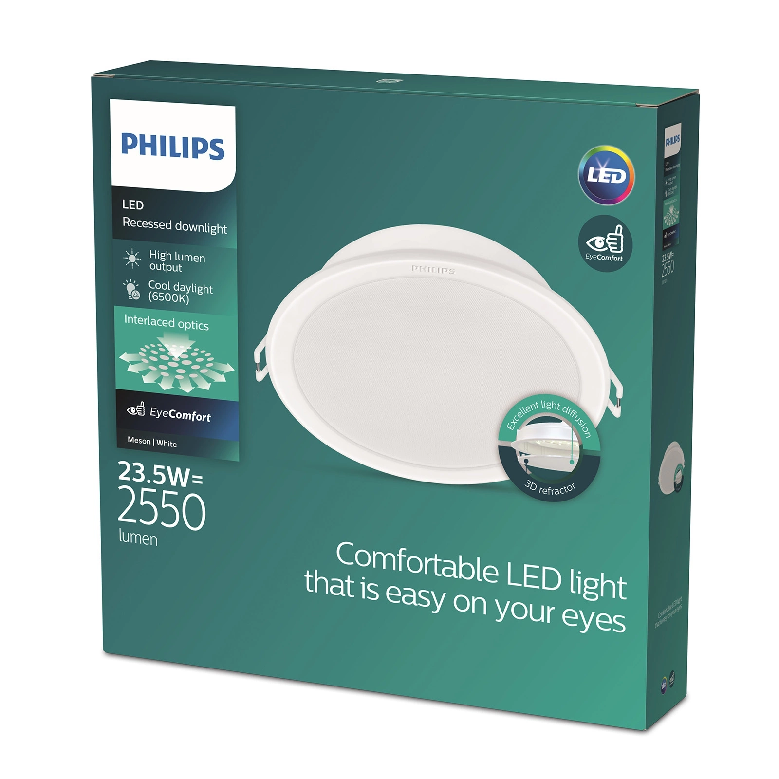 Philips Meson je elegantní vestavné LED svítidlo, které kombinuje moderní design s výjimečnou funkčností. S výkonem 23,5 W a průměrem 215 mm, toto kompaktní svítidlo je ideální pro různé prostory, od obývacího pokoje po kuchyň nebo chodbu. Díky neutrálnímu bílému provedení Meson harmonicky zapadá do stropu, aniž by dominoval designu interiéru.