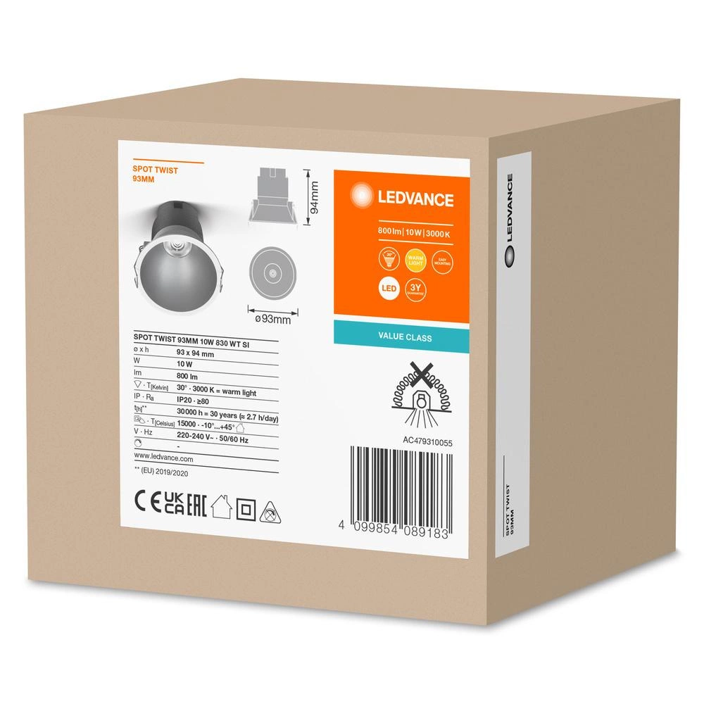 Produkt je vyroben z kombinace hliníku a polykarbonátu v elegantní bílo-stříbrné barvě. Svítidlo bylo navrženo pro zapuštěnou instalaci, což podtrhuje jeho moderní a minimalistický vzhled. Je napájeno ze sítě 220-240 V, má nízkou spotřebu energie a životnost až 30000 hodin. Stupeň krytí IP20 a odolnost proti nárazu IK02 zajišťují bezpečné a trvanlivé používání. Výrobek není stmívatelný. Počet vypínacích cyklů je 15 000.