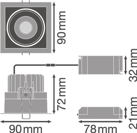 Výrobek se vyznačuje černým hliníkovým povrchem, který mu dodává elegantní vzhled. Montuje se zapuštěným způsobem pro diskrétní umístění do stropu. Panel se vyznačuje dlouhou životností 50000 hodin a vysokým stupněm krytí IP20. Je napájen ze sítě 220-240 V a zajišťuje stabilní a bezproblémový provoz. Optimální úhel rozložení světla 36° umožňuje přesné osvětlení vybraných zón.
