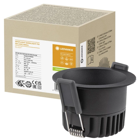 8W bodový panel LED Darklight Ledvance pro zapuštěnou montáž je elegantní a funkční svítidlo, které je ideální pro moderní interiéry. Díky vysokému indexu podání barev (Ra: 90) a uspokojivému světelnému toku (680 lm) nabízí teplé bílé světlo s barevnou teplotou 3000 K. Jeho světelná účinnost je 85 lm/W, což zajišťuje účinnost při nízké spotřebě energie (8 kWh).