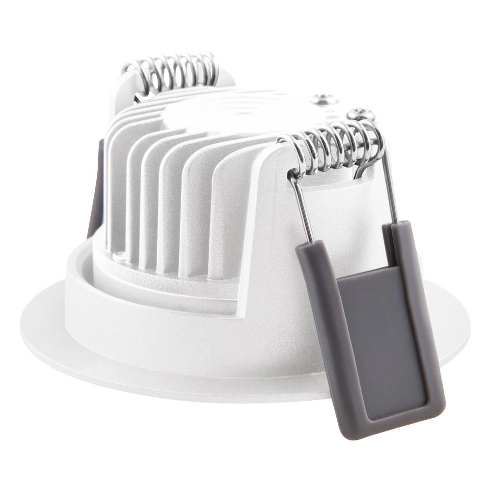 Svítidlo je vyrobeno z hliníku a je k dispozici v bílé barvě, což podtrhuje jeho moderní design. Výrobek lze integrovat do instalací díky způsobu zapuštěné montáže s montážním průměrem 68 mm. Stmívatelná funkce KMX umožňuje nastavit jas podle potřeby. Díky životnosti 50000 hodin a schopnosti pracovat při teplotách od -20 °C do +40 °C splňuje toto LED svítidlo všechny požadavky na moderní osvětlení. Svítidlo je rovněž certifikováno CE a má vysoké bezpečnostní stupně IP20 a IK03.