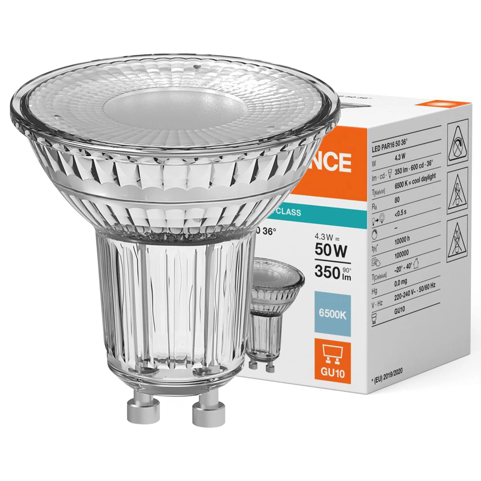 Objevte novou kvalitu osvětlení s LED žárovkou PAR16 GU10 od společnosti LEDVANCE. Tento špičkový výrobek kombinuje modernost s účinností a nabízí výkon 4,3 W, což odpovídá tradiční 50W žárovce. Můžete si tak užívat výrazné úspory energie, aniž byste museli dělat kompromisy v oblasti jasu. Tento model vyzařuje studené bílé světlo s barevnou teplotou 6500 K a je ideální pro místnosti vyžadující intenzivní osvětlení, jako jsou kuchyně, kanceláře nebo komerční prostory.