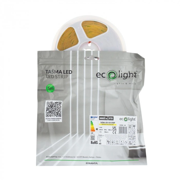 Objevte nové možnosti osvětlení s páskem LED COB 320 od společnosti ECO LIGHT! Tento inovativní výrobek kombinuje vynikající výkon a mimořádně estetický design, čímž vytváří dokonalé řešení pro každý interiér. LED pásek je napájen jmenovitým napětím 12 V DC a poskytuje vysokou energetickou účinnost. Světelný tok 900 lm/m a jmenovitý výkon na metr 10 W nabízejí mimořádně jasné a zároveň energeticky úsporné světlo. Teplá bílá barva s barevnou teplotou 3000 K vnese do obývacího pokoje, ložnice nebo jídelny útulnou a uvolňující atmosféru.