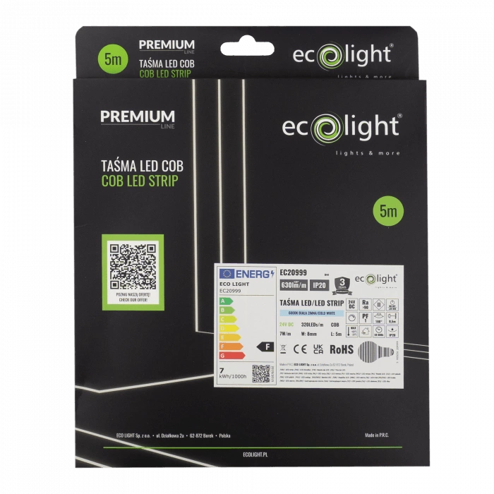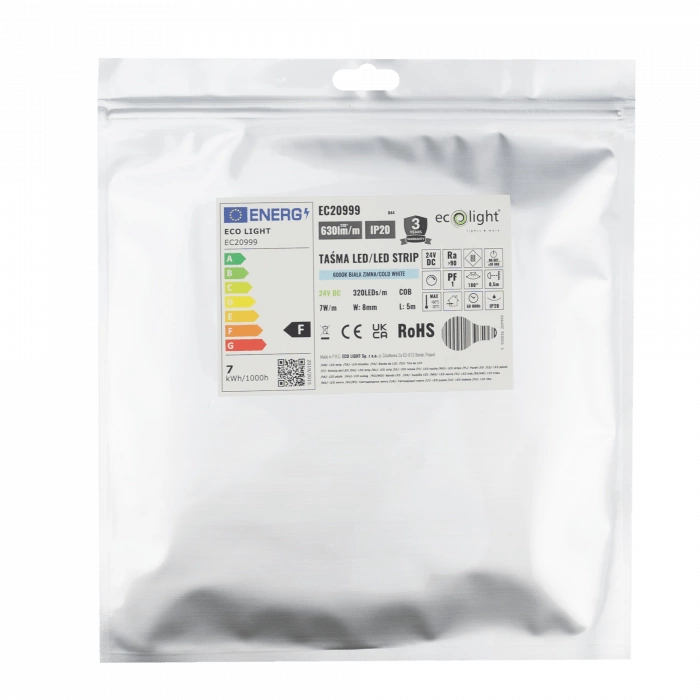 Objevte nový rozměr osvětlení s naší revoluční LED páskou. S výkonem 7 W/m a světelným tokem 630 lm/m nabízí pásek COB výjimečně živé a jasné světlo, které je ideální pro vytvoření jedinečné atmosféry ve vaší domácnosti. Díky neutrální barvě světla 4000 K dosáhnete efektu, který se dokonale hodí do každého interiéru, od obývacího pokoje přes ložnici až po jídelnu. Díky integrovaným diodám LED s vysokou hustotou 320LED/m poskytuje naše páska rovnoměrné osvětlení bez blikání.