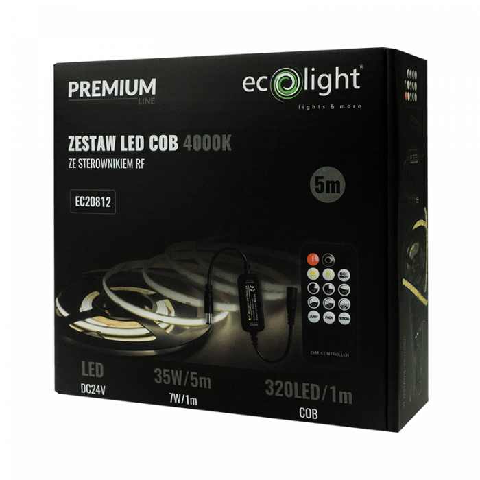 Posuňte svůj interiér na vyšší úroveň s vysoce kvalitním LED páskem od společnosti Ecolight. Tento výrobek s výkonem 7 W/m poskytuje vynikající osvětlení a díky 320 LED diodám na metr poskytuje až 630 lm/m, což z něj činí ideální volbu pro každý moderní interiér. Díky přirozené barvě světla 4000 K budou vaše prostory působit svěže a integrovaná konstrukce COB zajišťuje rovnoměrnou světelnou linii.