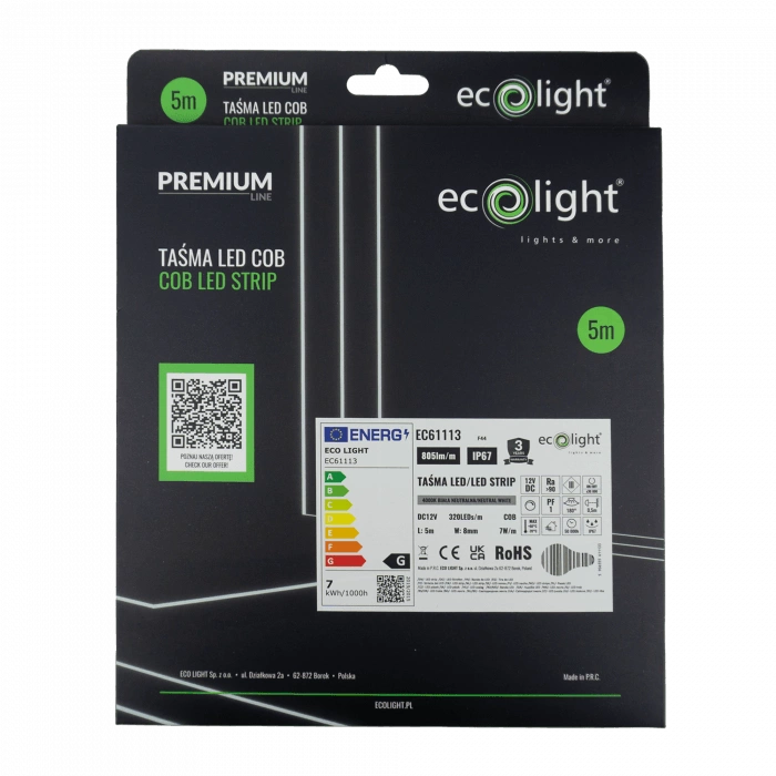 Je energeticky úsporné a spotřebovává pouhých 7 W/m, což se projeví v nižších účtech za elektřinu při zachování vynikající kvality světla. Vysoký index podání barev CRI ≥90 zaručuje přirozenou reprodukci barev, což je v mnoha oblastech použití klíčové. Naše pásky jsou také kompatibilní se stmívači, což umožňuje nastavit jas podle vašich potřeb. Nabízíme také snadnou instalaci díky kompaktní šířce výrobku, takže je ideální pro instalaci i v těch nejhůře přístupných místech. Nespokojíte se s kompromisem? Vyberte si pásku, která nabízí špičkovou kvalitu a dlouhou životnost.