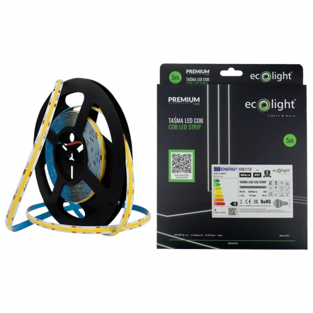 LED pásek COB 7W/m 805lm/m 320LED/m 12V 4000K neutrální bílá IP67 role 5m Ecolight
