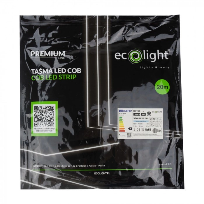 Objevte novou úroveň osvětlení s LED páskem Ecolight, který nabízí atraktivní kombinaci výkonu a estetiky. S výkonem 9 W/m a světelným tokem až 1125 lm/m zaručuje náš pásek intenzivní a jasné světlo, které je ideální pro jakýkoli prostor. Použití diod COB LED se promítá do rovnoměrného, estetického osvětlení, které lze úspěšně použít v interiéru i exteriéru. Použití materiálu z polyvinylchloridu (PVC) zajišťuje odolnost a dlouhou životnost.