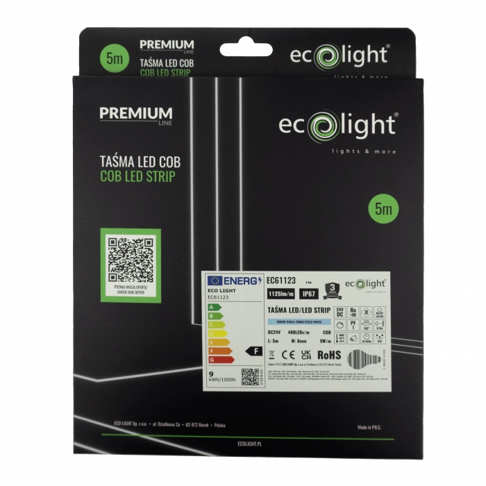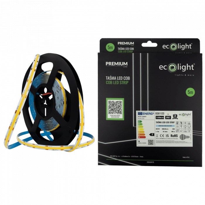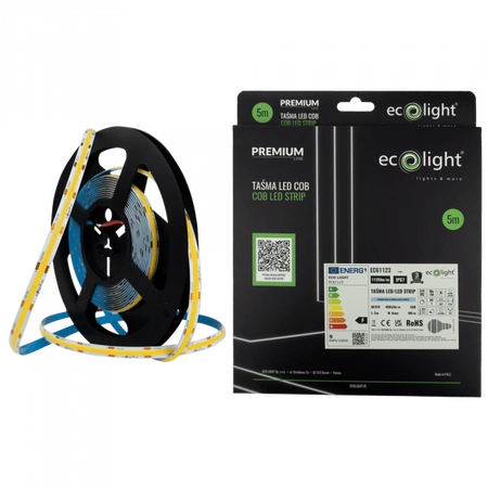 Objevte neobyčejnou sílu osvětlení s páskem LED COB 24V, který kombinuje odborné znalosti značky ECO LIGHT s nejmodernější světelnou technologií. Díky ohromujícímu jasu 1125 lumenů na metr a studené bílé barvě světla 6000 K je tento pásek dokonalým řešením pro pracovní prostory, sklady a dílny. Integrovaná technologie COB a vysoká hustota diod 480 LED/m zaručují rovnoměrné, intenzivní světlo bez nevzhledných světelných skvrn.