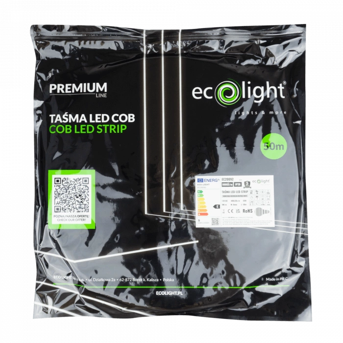 LED pásek COB od společnosti Ecolight je inovativní řešení osvětlení, které kombinuje moderní technologii se spolehlivým výkonem. LED pásky s výkonem 9 W/m a účinností 990 lm/m poskytují působivé světlo s neutrální barvou 4000 K. Díky integrovanému zdroji LED a technologii COB poskytuje pásek intenzivní a rovnoměrné osvětlení, které je ideální pro různé prostory ve vaší domácnosti, jako je obývací pokoj, ložnice nebo jídelna.