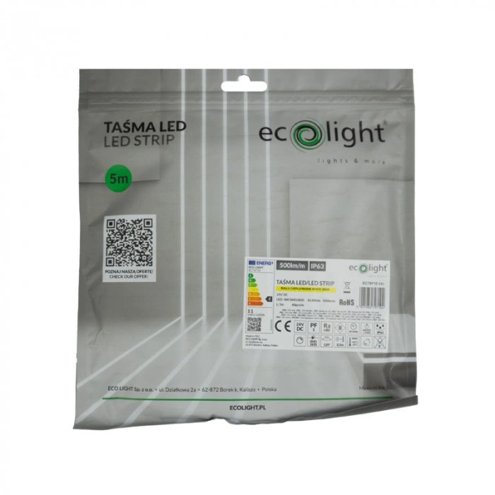 Objevte nový rozměr osvětlení s jedinečným LED páskem Ecolight, který nabízí 10,8 W na metr a působivý světelný tok 500 lm na metr. Použití nejmodernějších LED diod SMD 2835 zaručuje nejen dlouhotrvající výkon, ale také rovnoměrné rozložení světla s teplým, příjemným odstínem 3000K. Díky krytí IP63 je ideální pro použití v interiéru i exteriéru. Jedná se o výrobek, který se skvěle hodí do kuchyně, koupelny, na schody a dokonce i na zahradu.