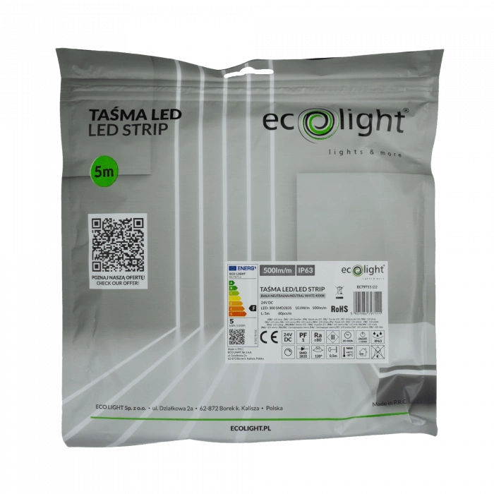 Objevte sílu světla s naším LED páskem Ecolight, který vnese do vašeho interiéru nebo zahrady moderní design a úžasnou funkčnost. LED pásek SMD 2835 je inovativní řešení, které vám umožní osvětlit jakoukoli místnost s minimální spotřebou energie. Díky příkonu 54 W a působivé světelné účinnosti 46,3 lm/W vytváří pásek jasné, neutrální světlo s barevnou teplotou 4000 K, které je ideální pro kuchyně, koupelny, schody a dokonce i zahradu. Jeho konstrukce založená na 60 vysoce kvalitních LED diodách na metr zajišťuje rovnoměrný rozptyl světla.