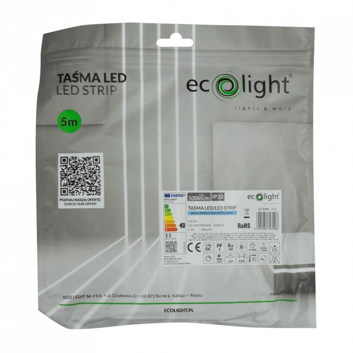 Náš LED pásek má krytí IP20, takže je bezpečným řešením pro použití v interiéru. Díky standardnímu napájení 24 V DC je nejen účinný, ale také spolehlivý. Díky elegantní šířce 8 mm a jednoduché instalaci jej snadno umístíte do jakéhokoli prostoru, včetně těžko přístupných míst. LED páska Ecolight bezpochyby není jen o osvětlení, je to investice do krásného a moderního prostoru!
