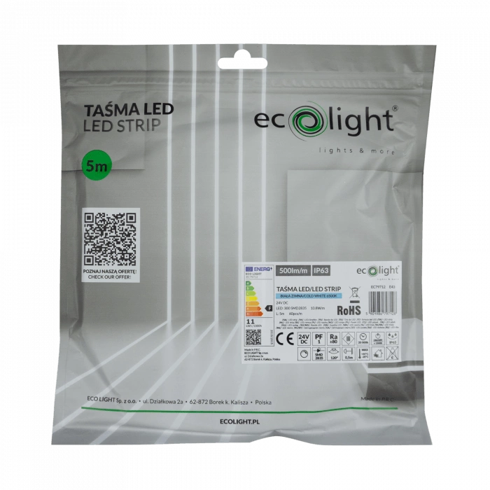 Zajistěte svým prostorám moderní a stylové osvětlení pomocí našich LED pásků Ecolight. Díky pokročilé technologii SMD 2835 LED páska nabízí světelný tok 2500 lm na roli, což zajišťuje jasné, rovnoměrné a účinné dekorativní a praktické osvětlení. S výkonem 10,8 W/m a jmenovitým napětím 24 V je LED pásek úsporný a ideální pro dlouhodobé použití v domácnostech a komerčních prostorách.