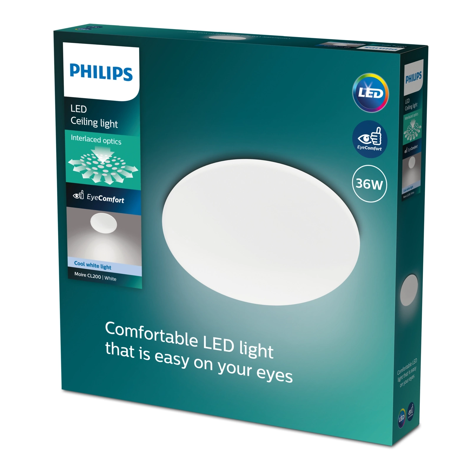 LED Plafond od Philips je dokonalou kombinací moderního designu, inovativních technologií a funkčnosti, usnadňují a zefektivňují každodenní činnosti. Konstrukce tohoto stropního svítidla využívá technologii prokládané optiky, která chytře rozděluje světlo a zlepšuje celkovou kvalitu osvětlení. Mikrostruktura pyramidových čoček rozptyluje a rovnoměrně rozděluje světlo, což je pro oči příjemnější.