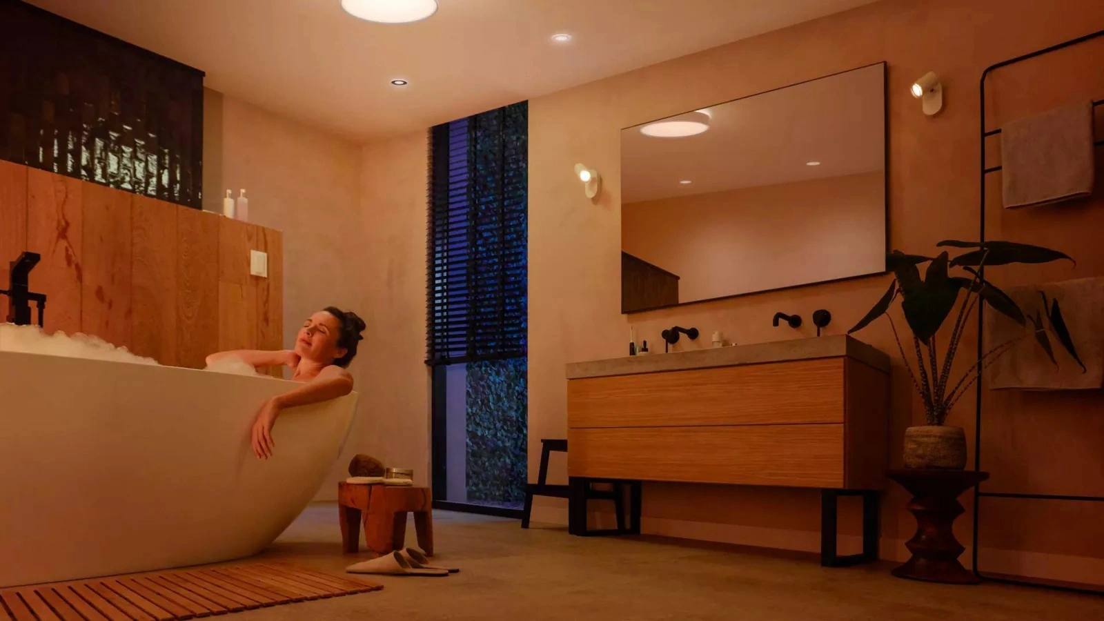 - Vodotěsné inteligentní osvětlení (IP44) určené do koupelny