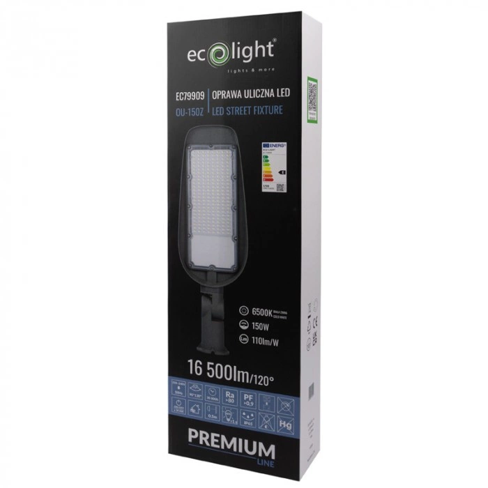 - Účinnost a výkon: Vysoce výkonná 150W lampa generující světelný tok 16500 lm, která poskytuje vynikající osvětlení venkovních prostor.