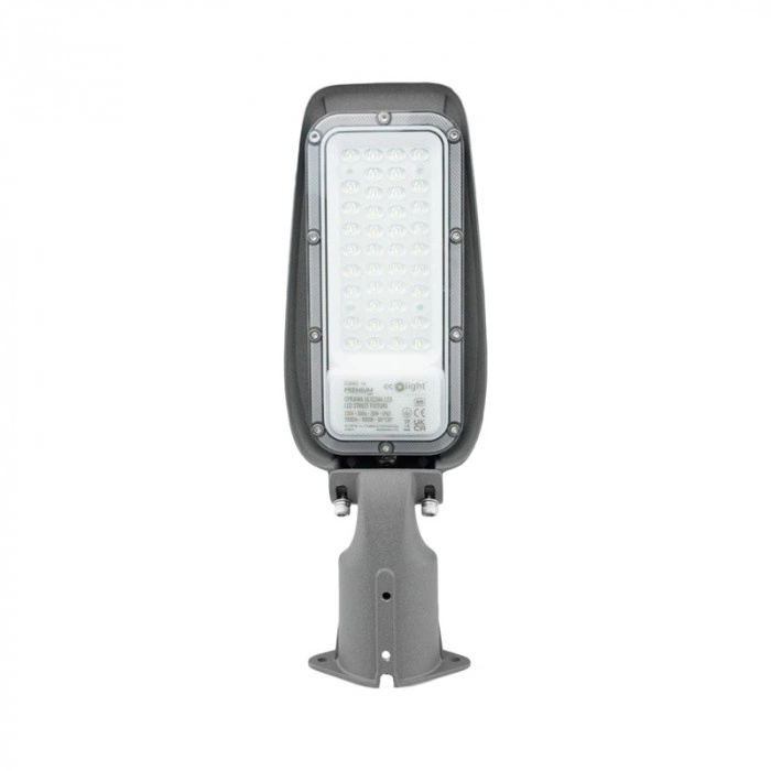 Svítidlo je vyrobeno z odolného hliníku a osazeno LED diodami SMD a díky stupni krytí IP65 se vyznačuje vysokou odolností proti povětrnostním vlivům. Je určeno k montáži na osvětlovací stožáry, což z něj činí univerzální součást městské infrastruktury. Standardní provozní napětí 220-240 V AC a nastavitelný úhel svícení umožňují snadnou instalaci a přizpůsobení konkrétním potřebám osvětlení. Šedá barva provedení dodává svítidlu elegantní vzhled, zatímco průhledný otvor zajišťuje optimální rozptyl světla.