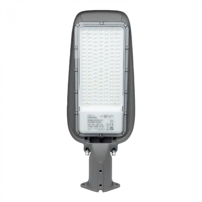 100W pouliční lampa LED PREMIUM Ecolight je pokročilé řešení osvětlení, které dokonale vyhovuje potřebám moderních měst a venkovních prostor. Vyznačuje se výjimečným výkonem 100 W a světelnou účinností 130 lm/W, což znamená světelný tok 13 000 lm. Barva světla 4000 K poskytuje neutrální, oku lahodící odstín, ideální pro osvětlení ulic a uliček. Díky integrovanému zdroji LED a vysokému indexu podání barev 80 Ra poskytuje svítidlo vynikající reprodukci barev, což zvyšuje bezpečnost a pohodlí uživatelů.