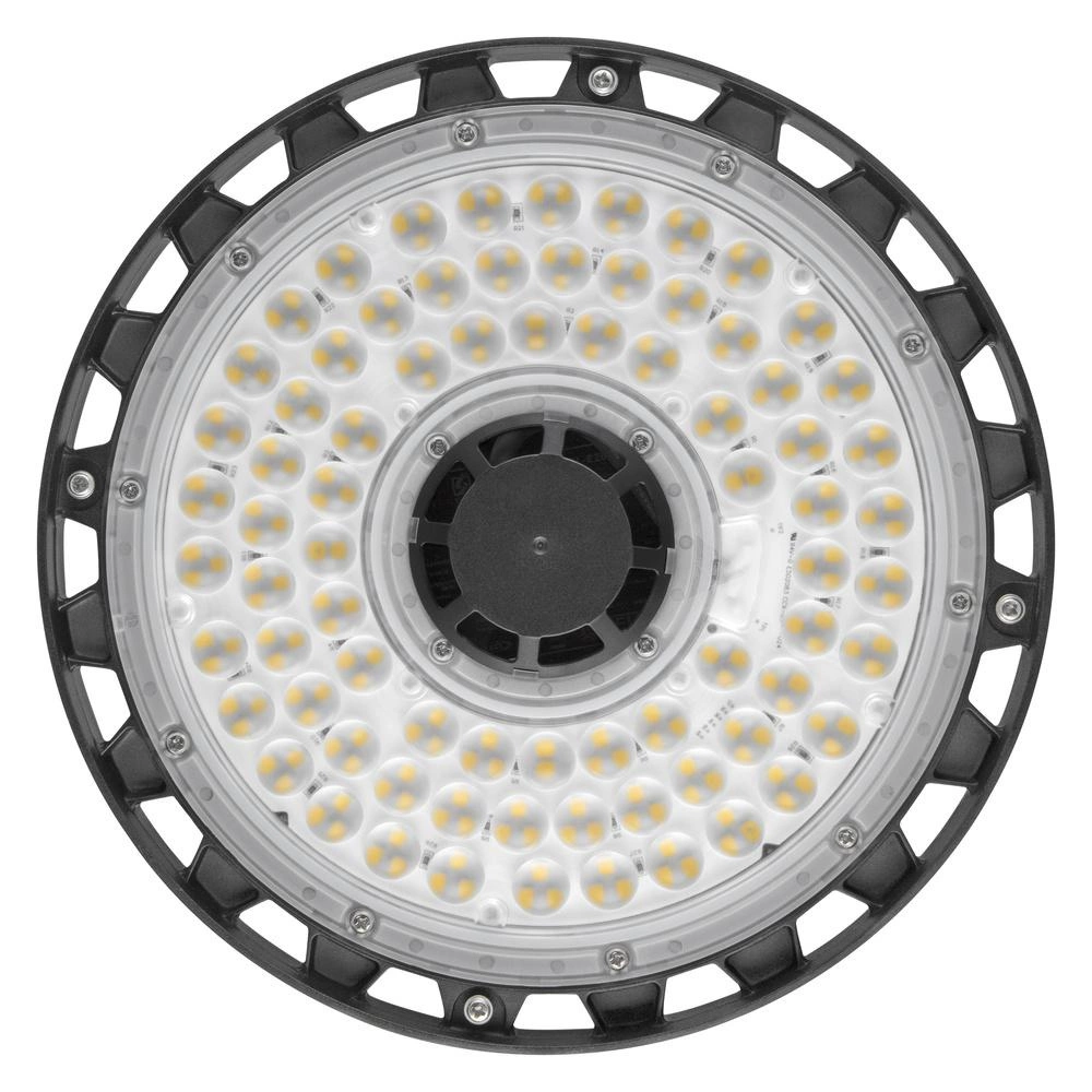 Svítidlo je vyrobeno z hliníku v černé barvě a má stupeň krytí IP66 a odolnost proti nárazu IK10. Je připraveno pro povrchovou nebo závěsnou montáž a díky funkci stmívání můžete intenzitu světla nastavit podle svých potřeb. Napájení 220-240 V a provozní teplota -30 až +50 °C umožňují jeho použití v širokém spektru průmyslových podmínek.