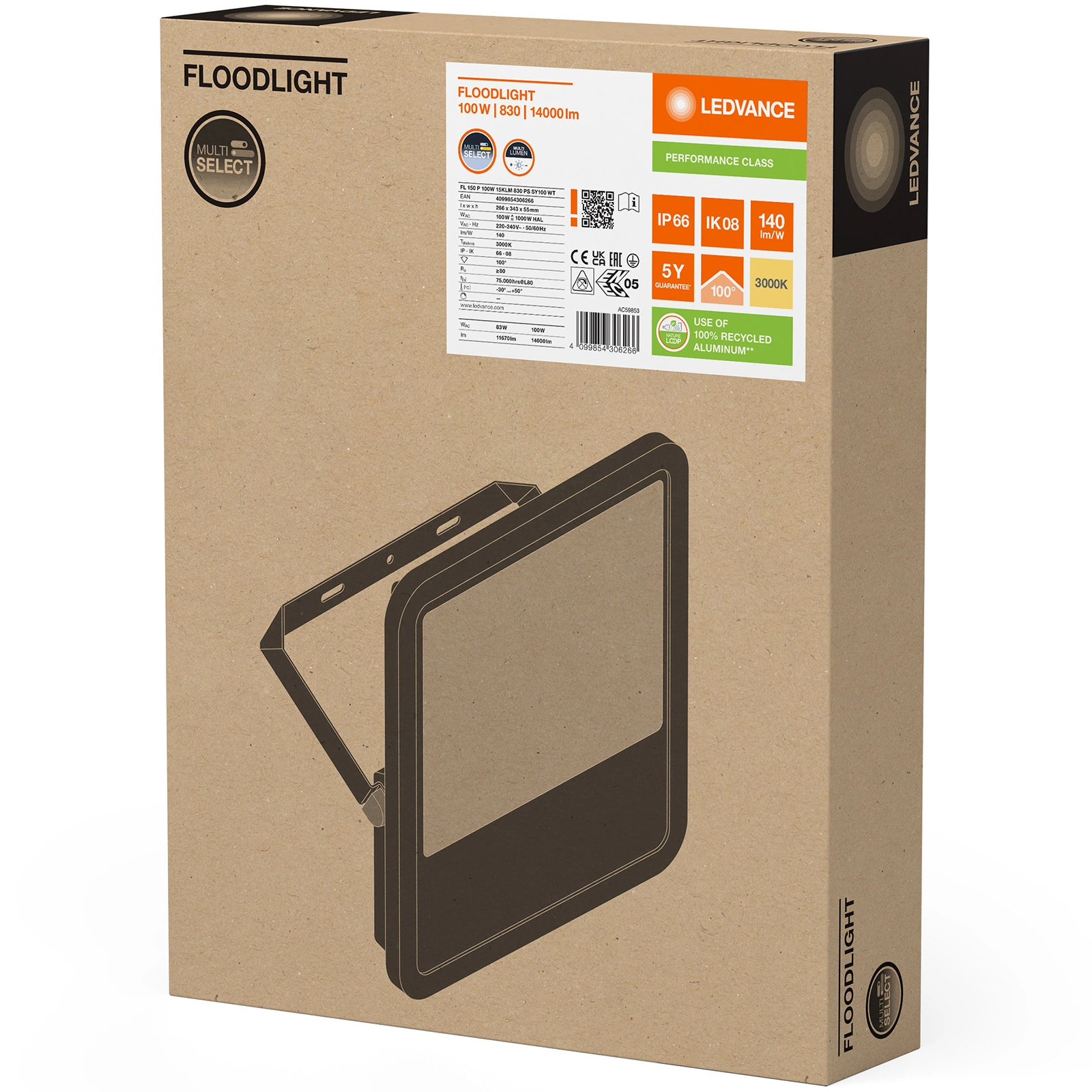 Reflektor LEDVANCE je vybaven energeticky úsporným LED světelným zdrojem z 100W. Lampy vyzařuje teplé světlo světlo s barevnou teplotou 3000K který umožňuje světelný tok až do hodnoty 14000lm. Tvrzené matné sklo zajišťuje rovnoměrné šíření světla. LEDVANCE LED halogen je inovativní zařízení, které má své využití ve venkovním prostředí, nejlépe se hodí k osvětlení garáží, fasád budov nebo příjezdových cest.