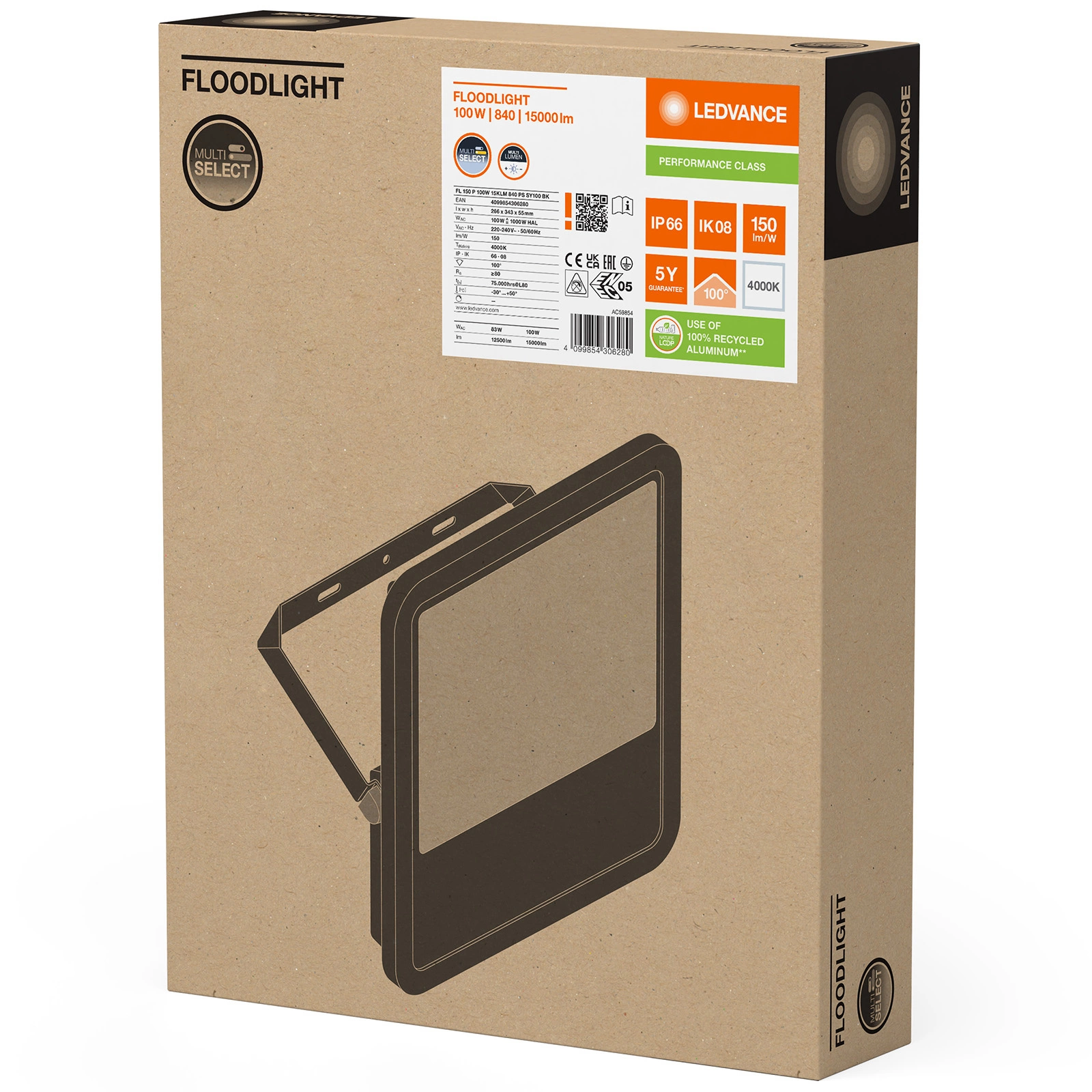 Reflektor LEDVANCE je vybaven energeticky úsporným LED světelným zdrojem z 100W. Lampy vyzařuje neutrální světlo s barevnou teplotou 4000K který umožňuje světelný tok až do hodnoty 15000lm. Tvrzené matné sklo zajišťuje rovnoměrné šíření světla. LEDVANCE LED halogen je inovativní zařízení, které má své využití ve venkovním prostředí, nejlépe se hodí k osvětlení garáží, fasád budov nebo příjezdových cest.