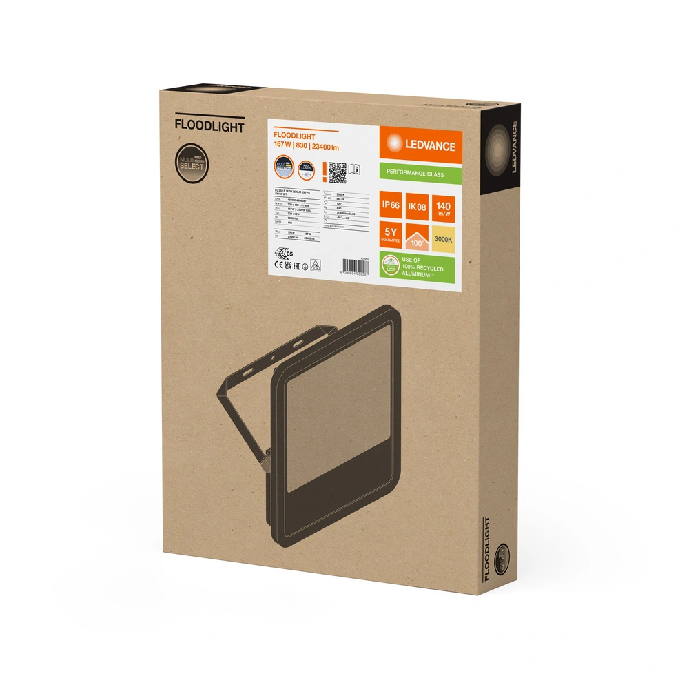 Reflektor LEDVANCE je vybaven energeticky účinným LED světelným zdrojem z 167W. Lampy vyzařuje teplé světlo světlo s barevnou teplotou 3000K který umožňuje světelný tok až do hodnoty 23400lm. Tvrzené matné sklo zajišťuje rovnoměrné šíření světla. LEDVANCE LED halogen je inovativní zařízení, které má své využití ve venkovním prostředí, nejlépe se hodí k osvětlení garáží, fasád budov nebo příjezdových cest.