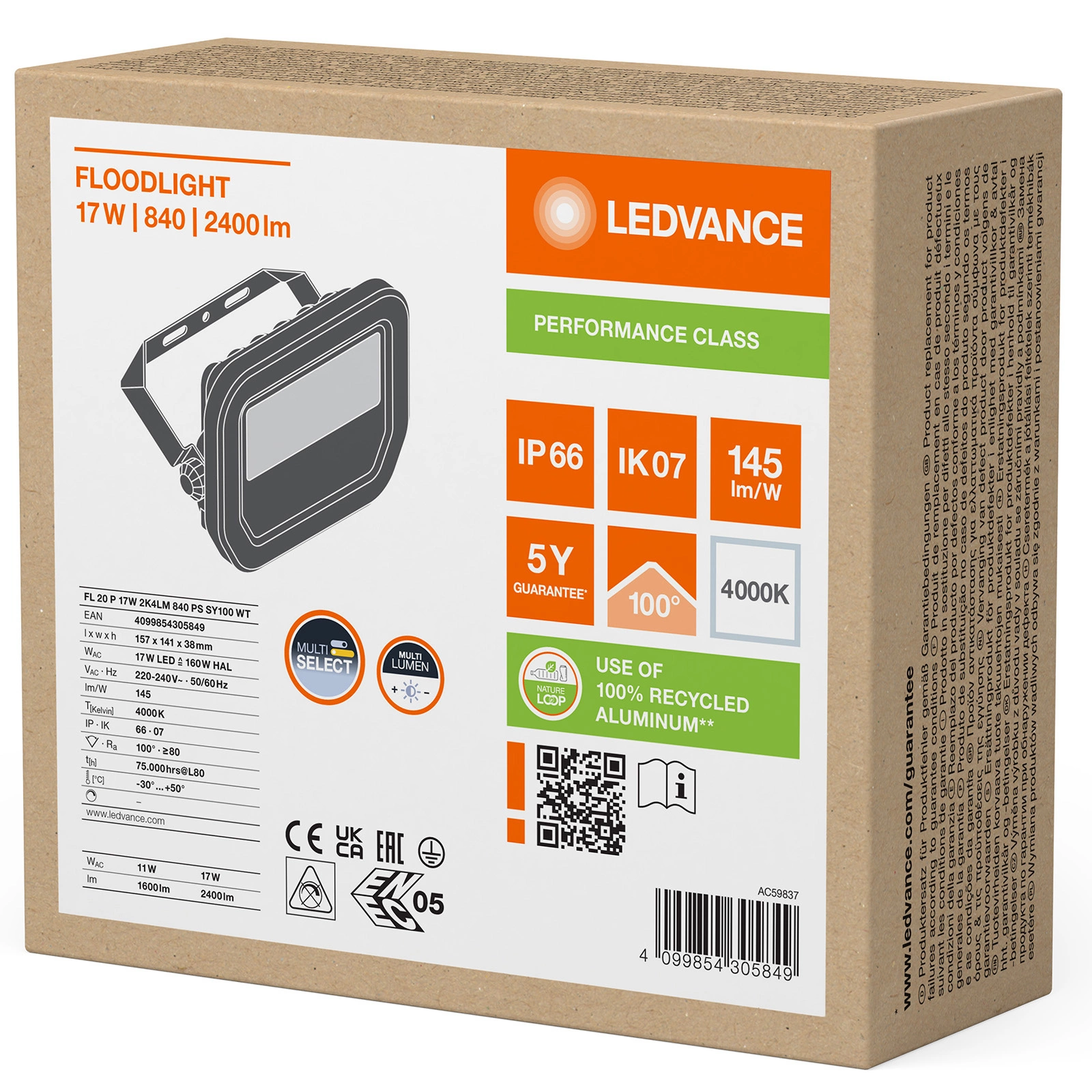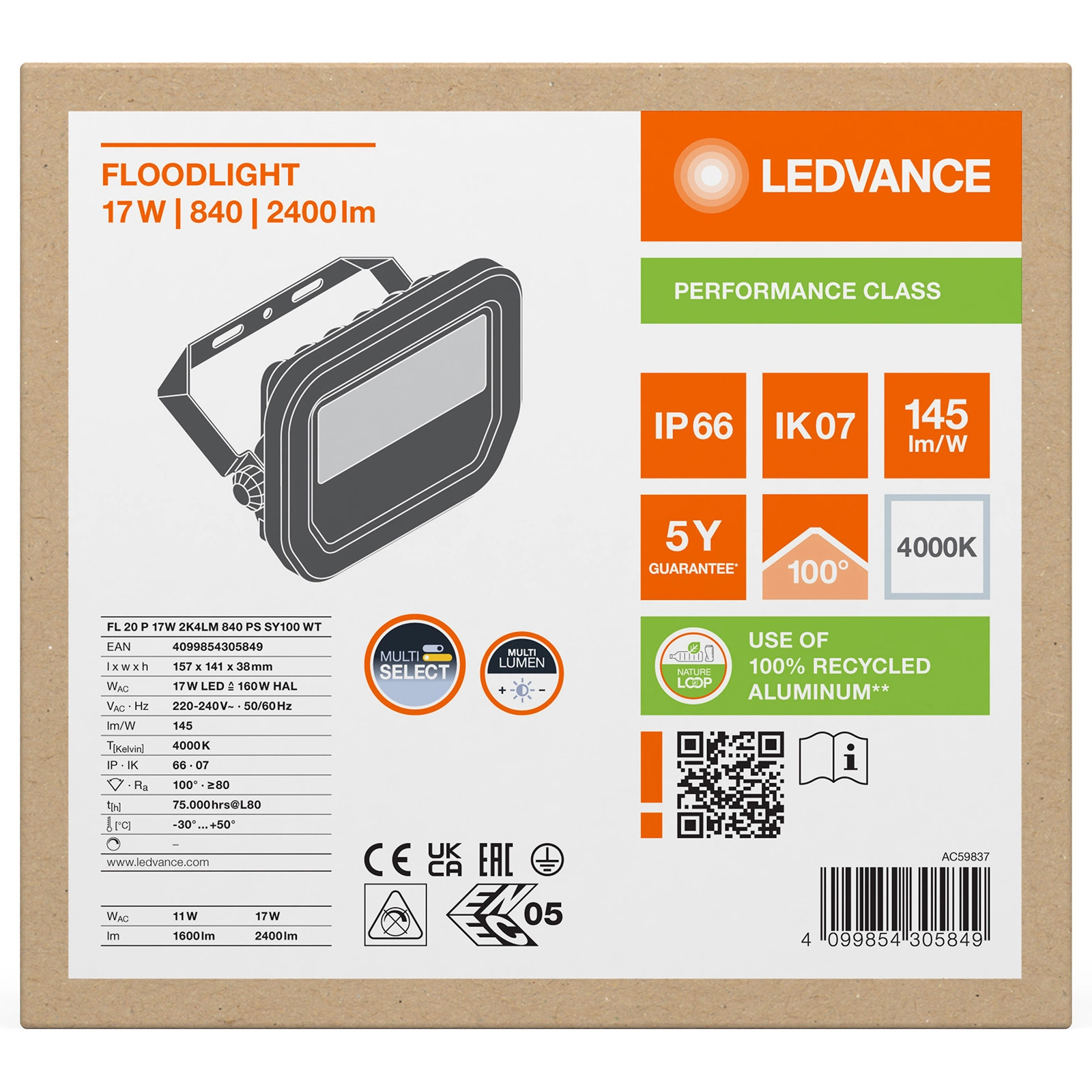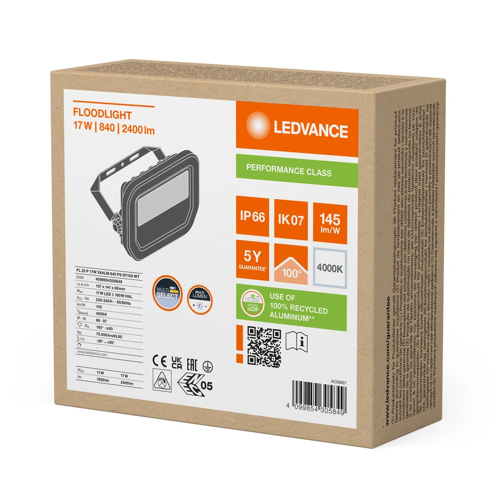 Reflektor LEDVANCE je vybaven energeticky úsporným LED světelným zdrojem z 17W. Lampy vyzařuje neutrální světlo s barevnou teplotou 4000K který umožňuje světelný tok až do hodnoty 2400 lm. Tvrzené matné sklo zajišťuje rovnoměrné šíření světla. LEDVANCE LED halogen je inovativní zařízení, které má své využití ve venkovním prostředí, nejlépe se hodí k osvětlení garáží, fasád budov nebo příjezdových cest.