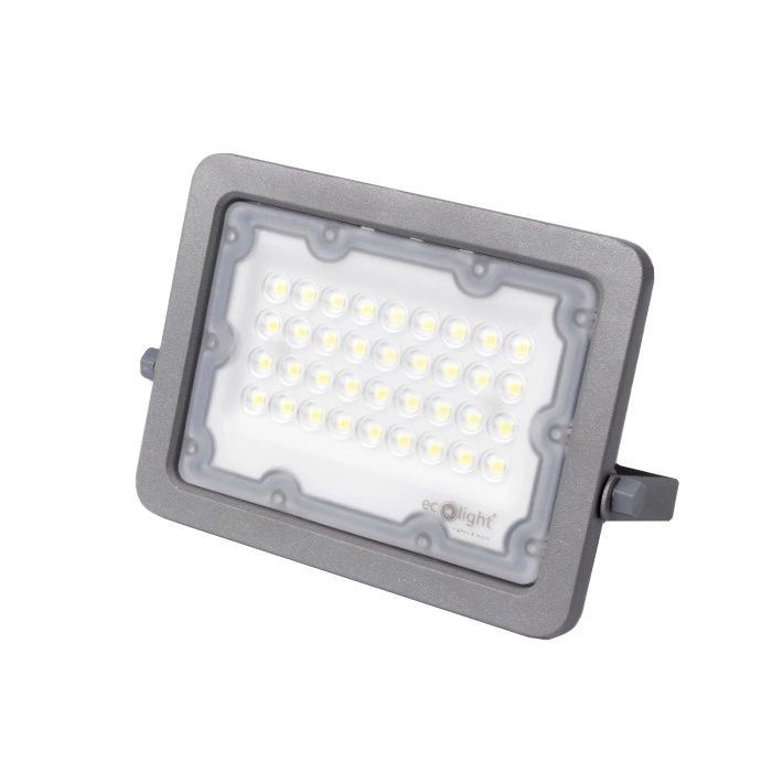 30W LED reflektor Ecolight Premium Line je mimořádně účinný zdroj světla, který je ideální pro různé venkovní aplikace. Je vybaven nejmodernějšími LED diodami SMD, nabízí výkon 30 W a působivý světelný tok 3000 lm při zachování vynikající světelné účinnosti 100 lm/W. S barevnou teplotou 6500 K vytváří studené bílé světlo, které zvyšuje viditelnost a bezpečnost v jakémkoli prostředí.
