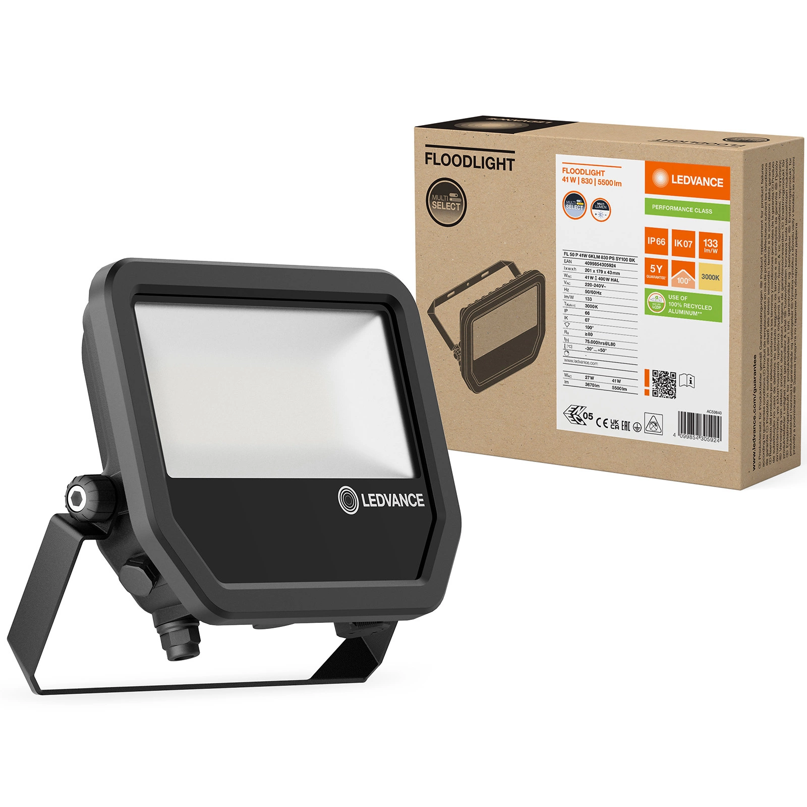 Reflektor LEDVANCE je vybaven energeticky úsporným LED světelným zdrojem z 41W. Lampy vyzařuje teplé světlo světlo s barevnou teplotou 3000K který umožňuje světelný tok až do hodnoty 5500lm. Tvrzené matné sklo zajišťuje rovnoměrné šíření světla. LEDVANCE LED halogen je inovativní zařízení, které má své využití ve venkovním prostředí, nejlépe se hodí k osvětlení garáží, fasád budov nebo příjezdových cest.