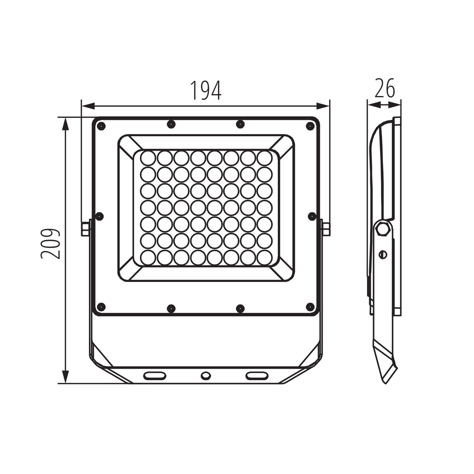 Robustní hliníková konstrukce a polykarbonátová clona zajišťují trvanlivost a odolnost vůči povětrnostním vlivům, což potvrzuje vysoké krytí IP65. Reflektor je určen k povrchové montáži a má nastavitelný úhel svícení, takže jej snadno přizpůsobíte svým specifickým potřebám.