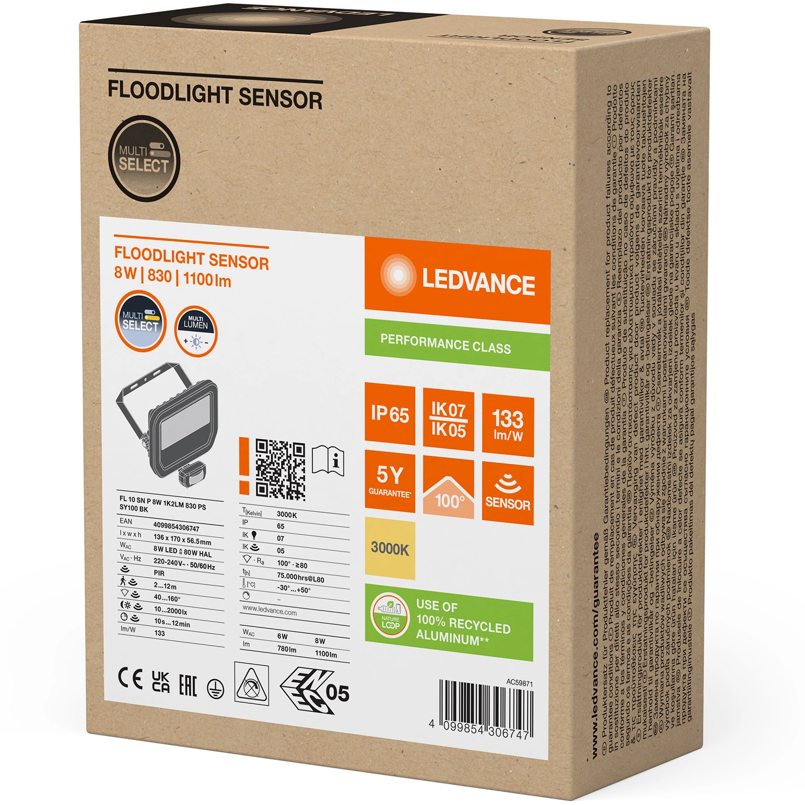 Reflektor LEDVANCE s detektorem pohybu je vybaven energeticky úsporným LED světelným zdrojem z 8W. Lampy vyzařuje teplé světlo světlo s barevnou teplotou 3000K který umožňuje světelný tok až do hodnoty 1100lm. Tvrzené matné sklo zajišťuje rovnoměrné šíření světla. LEDVANCE LED halogen je inovativní zařízení, které má své využití ve venkovním prostředí, nejlépe se hodí k osvětlení garáží, fasád budov nebo příjezdových cest.