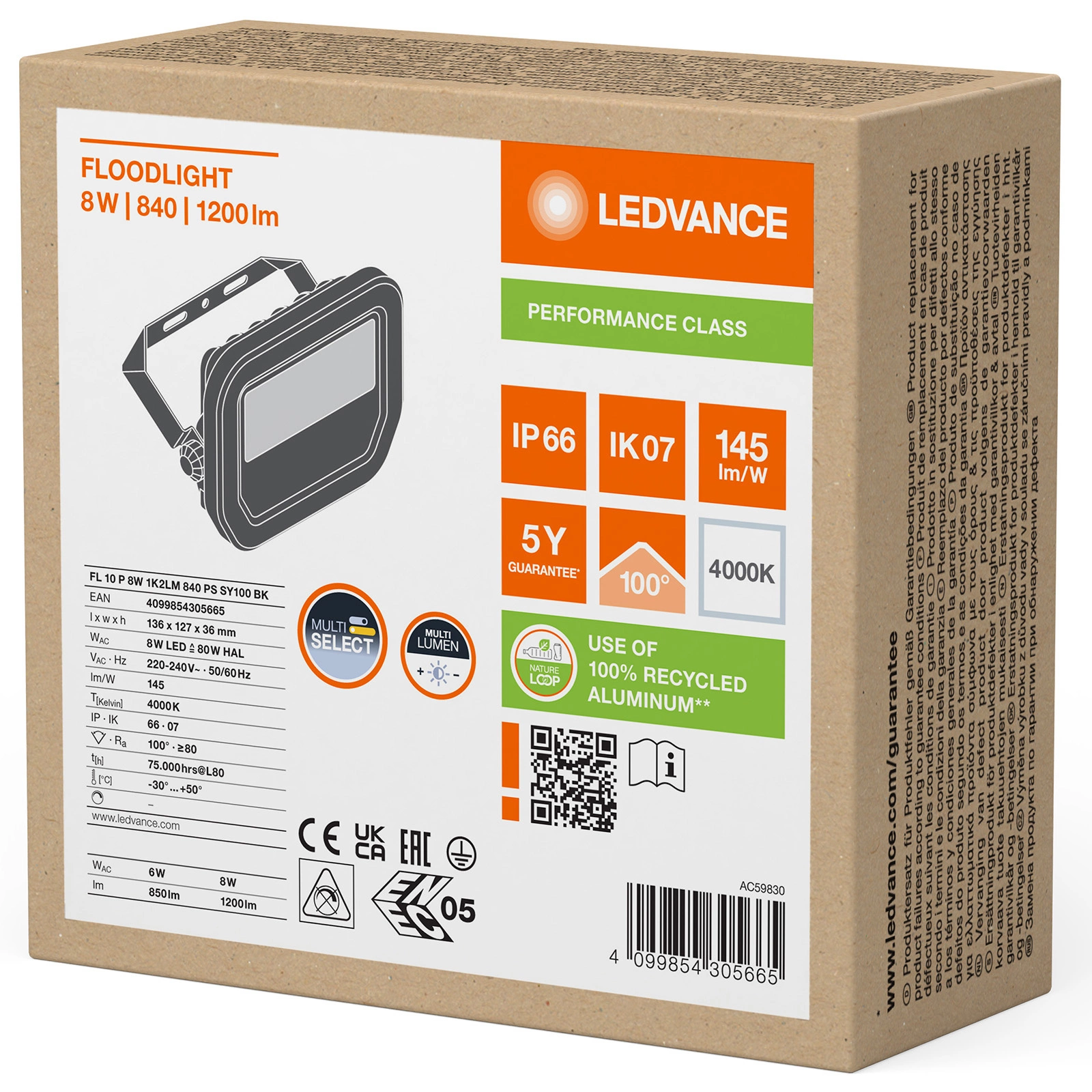 Reflektor LEDVANCE je vybaven energeticky úsporným LED světelným zdrojem z 8W. Lampy vyzařuje neutrální světlo s barevnou teplotou 4000K který umožňuje světelný tok až do hodnoty 1200lm. Tvrzené matné sklo zajišťuje rovnoměrné šíření světla. LEDVANCE LED halogen je inovativní zařízení, které má své využití ve venkovním prostředí, nejlépe se hodí k osvětlení garáží, fasád budov nebo příjezdových cest.