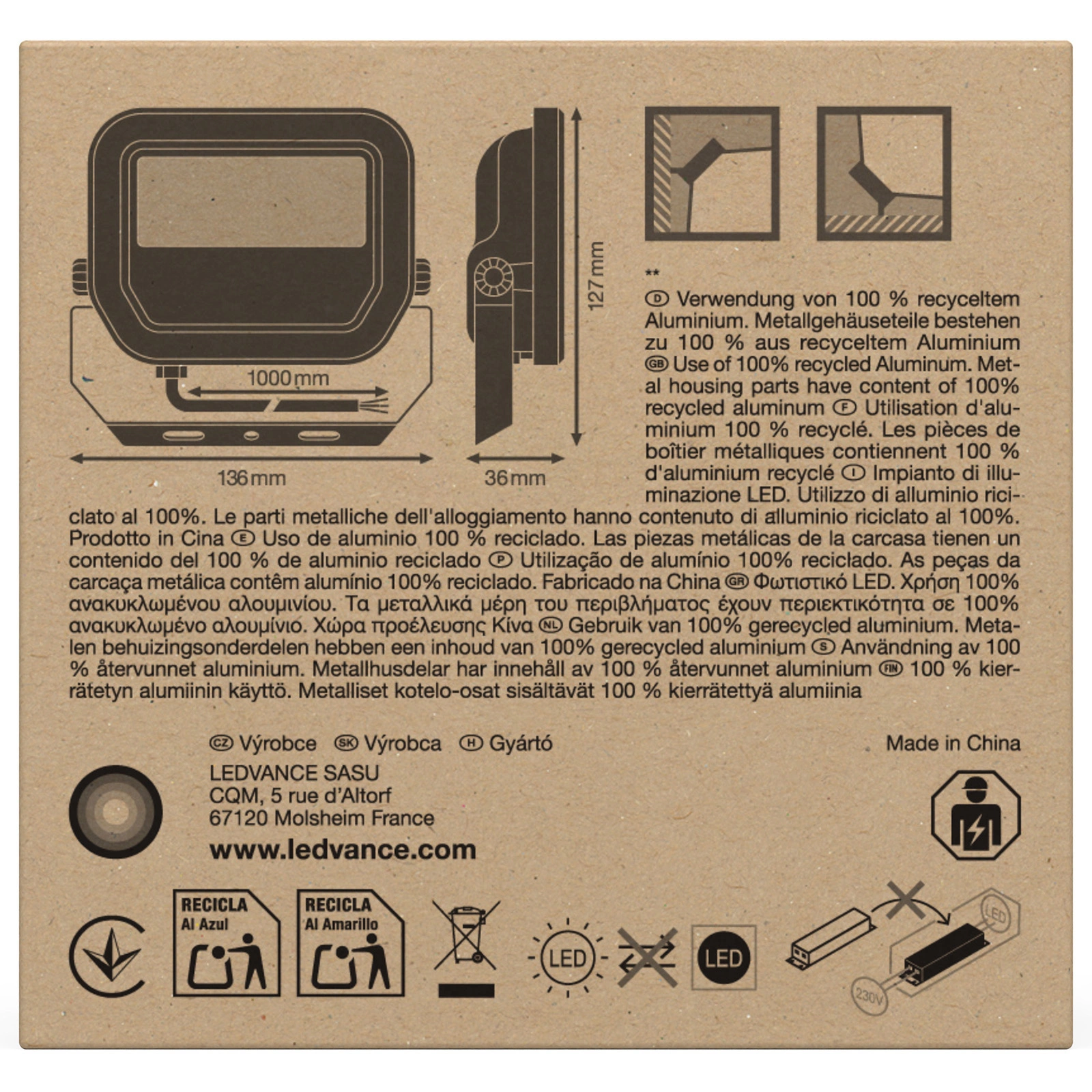 Reflektor LEDVANCE je vybaven energeticky úsporným LED světelným zdrojem z 8W. Lampy vyzařuje chlad světlo s barevnou teplotou 6500K který umožňuje světelný tok až do hodnoty 1200lm. Tvrzené matné sklo zajišťuje rovnoměrné šíření světla. LEDVANCE LED halogen je inovativní zařízení, které má své využití ve venkovním prostředí, nejlépe se hodí k osvětlení garáží, fasád budov nebo příjezdových cest.