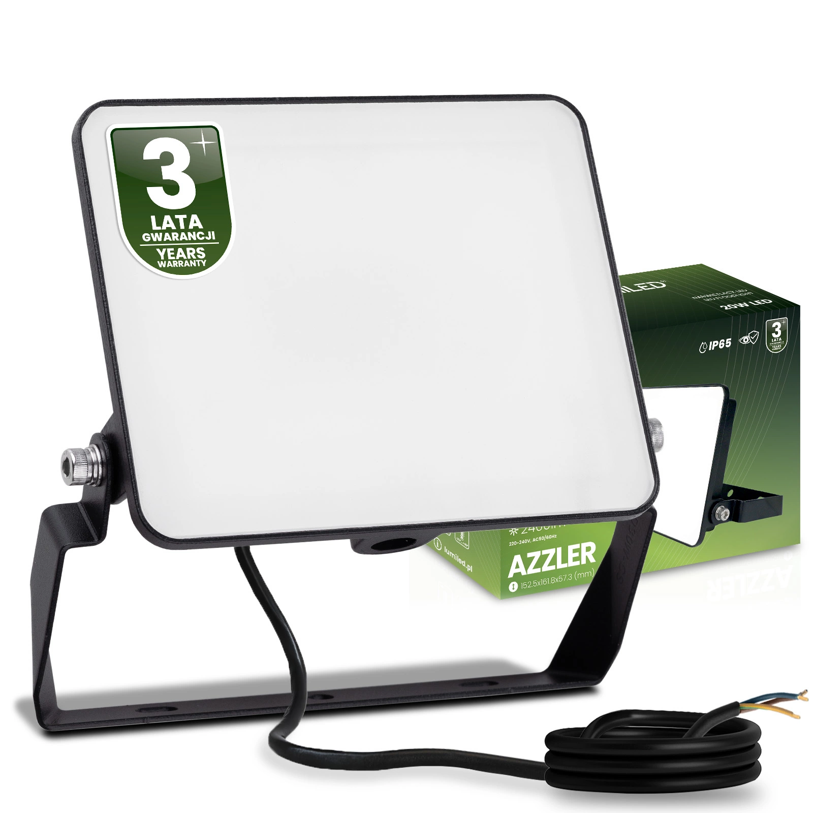 LED reflektor AZZLER značky Lumiled je moderní a energeticky úsporné osvětlovací řešení, které vyniká vysokou světelnou účinností, pevnou konstrukcí a minimalistickým, estetickým vzhledem. Díky pokročilé LED technologii generuje světelný tok 2400lm, což umožňuje účinné osvětlení i velkých ploch při nízké spotřebě energie.