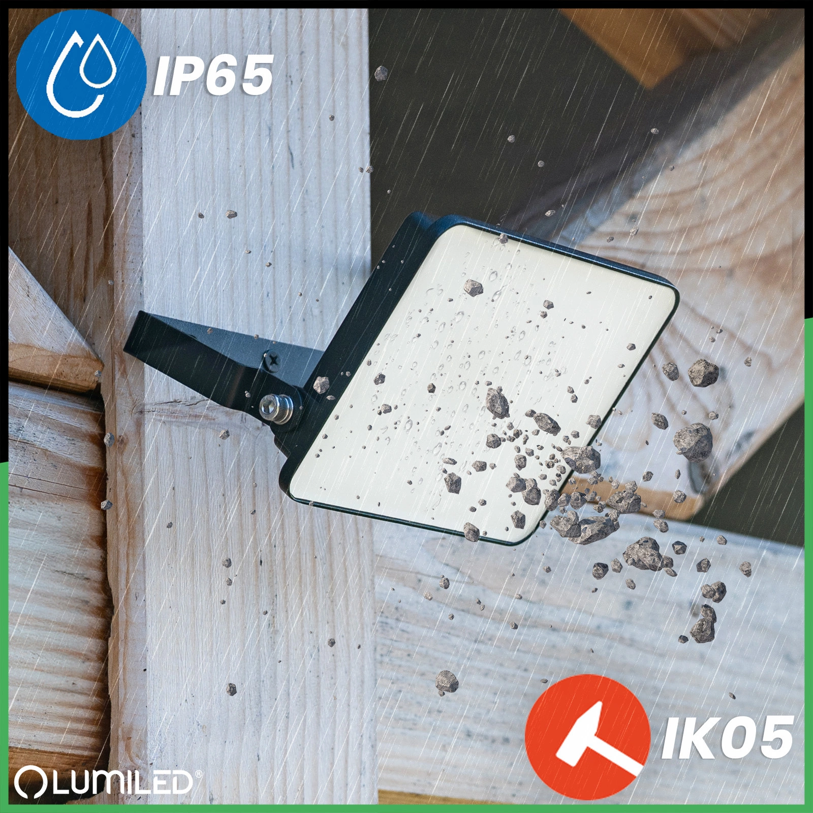 LED reflektory byly navrženy pro náročné venkovní použití. Jejich pevné, hermeticky uzavřené pouzdro z odolných materiálů vykazuje vysokou odolnost vůči nepříznivým povětrnostním podmínkám, jako je déšť, prach či kolísání teplot. Vysoký stupeň krytí IP65 zaručuje úplnou těsnost proti prachu a silným proudům vody ze všech směrů.