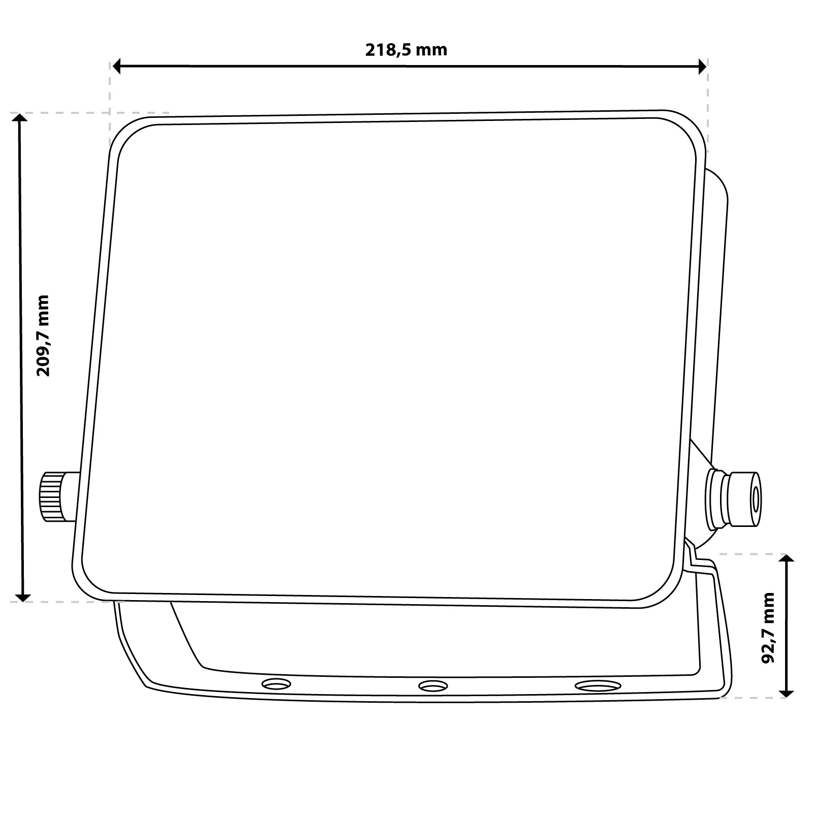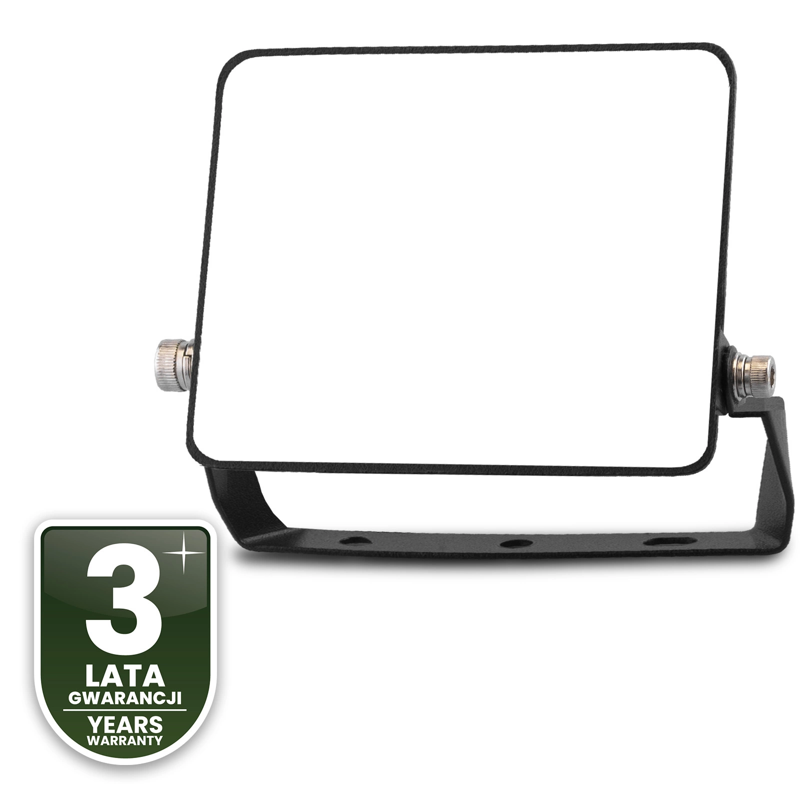 Reflektor AZZLER je vybaven pevným montážním držákem s jednoduchým, ale funkčním designem. Konstrukce založená na bočních nastavovacích šroubech umožňuje rychlé nastavení úhlu osvětlení bez nutnosti demontáže celého držáku. Tři montážní otvory v základně umožňují bezpečné a stabilní připevnění jednotky k různým povrchům. Toto praktické řešení výrazně zlepšuje instalaci, zejména na těžko přístupných místech.