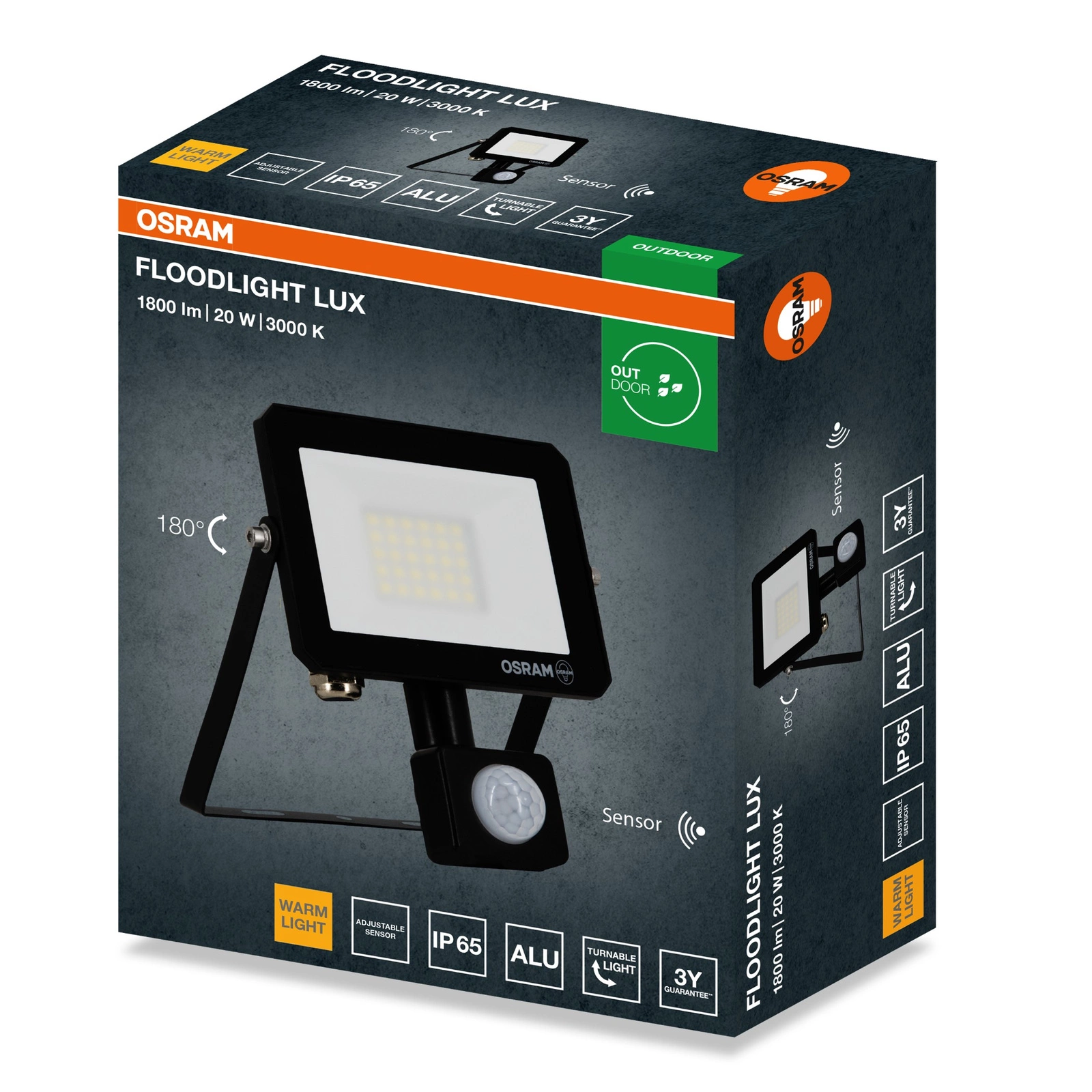 LED reflektor Halogenový venkovní reflektor 20W 3000K 1800lm IP65 se senzorem pohybu a soumraku SENSOR FLOODLIGHT LUX OSRAM