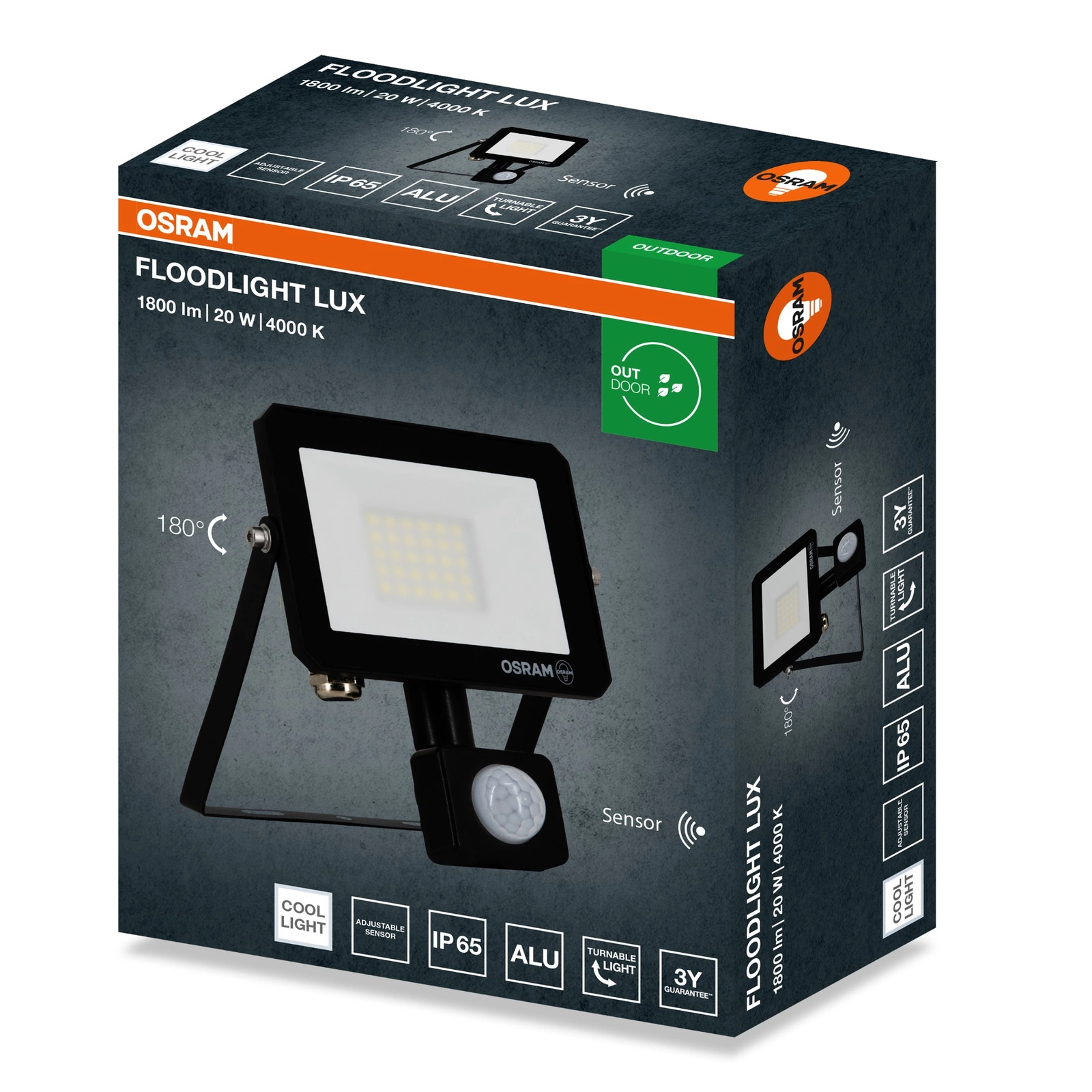 LED reflektor Halogenový venkovní reflektor 20W 4000K 1800lm IP65 se senzorem pohybu a soumraku SENSOR FLOODLIGHT LUX OSRAM