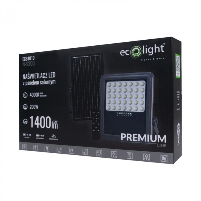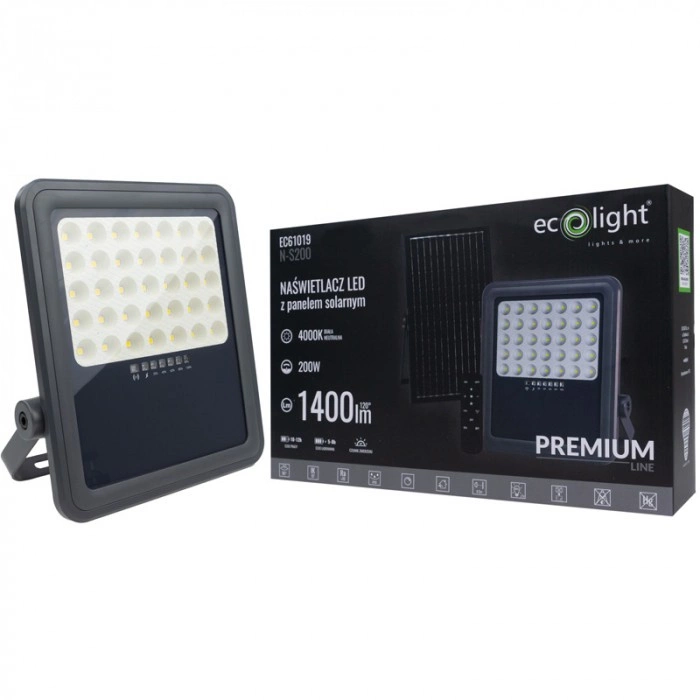 LED reflektor Solar Reflector 200W 1400lm 4000K Neutral IP65 se soumrakovým senzorem + dálkové ovládání Ecolight