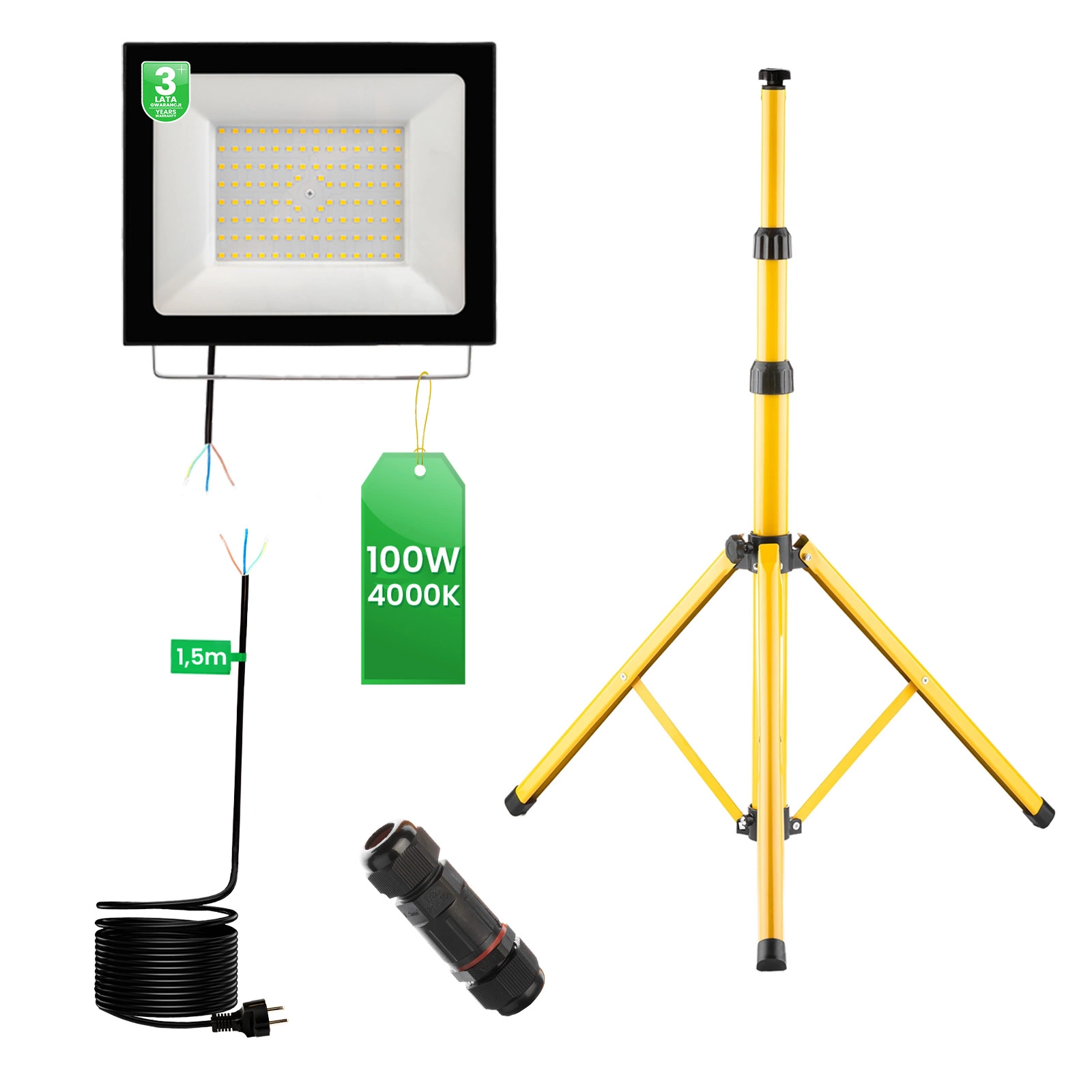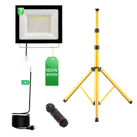 Lampa, reflektor je vybaven energeticky úsporným LED světelným zdrojem s výkonem 100W. Vyzařuje světlo se silnou neutrální barvou o teplotě 4000K, což poskytuje světelný tok až 9000lm. To znamená, že lampa je schopná osvětlit velké plochy, což z ní činí ideální volbu pro osvětlení různých prostor.